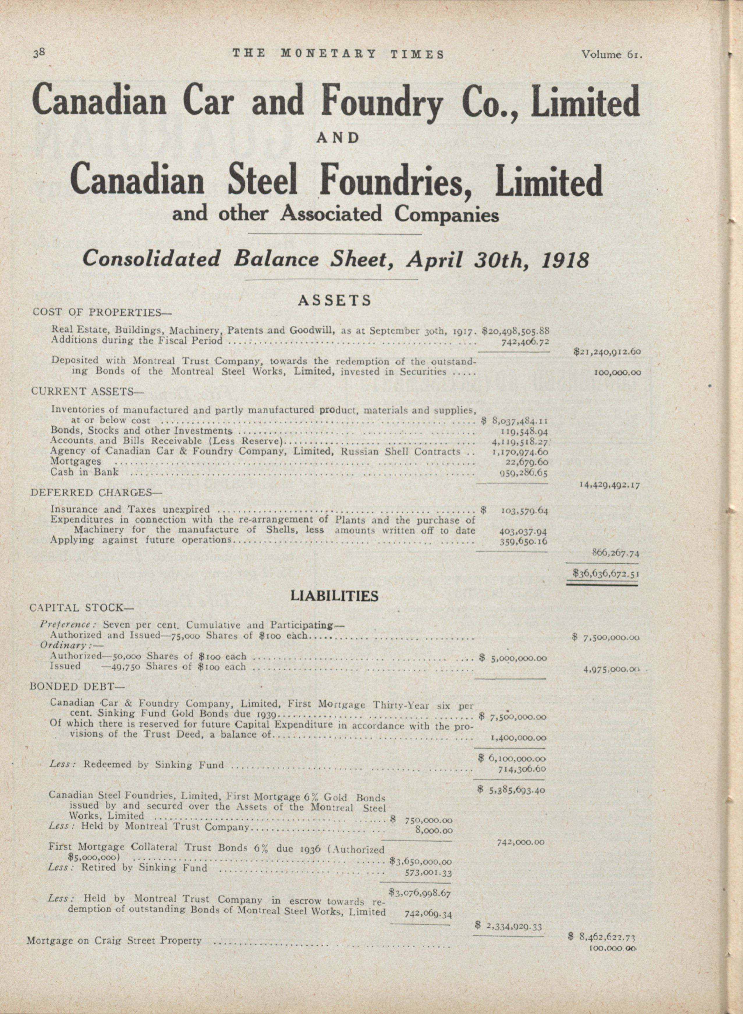 - The Monetary Times, trade review and insurance chronicle. : Volume 61 No. 2 (July 12, 1918)