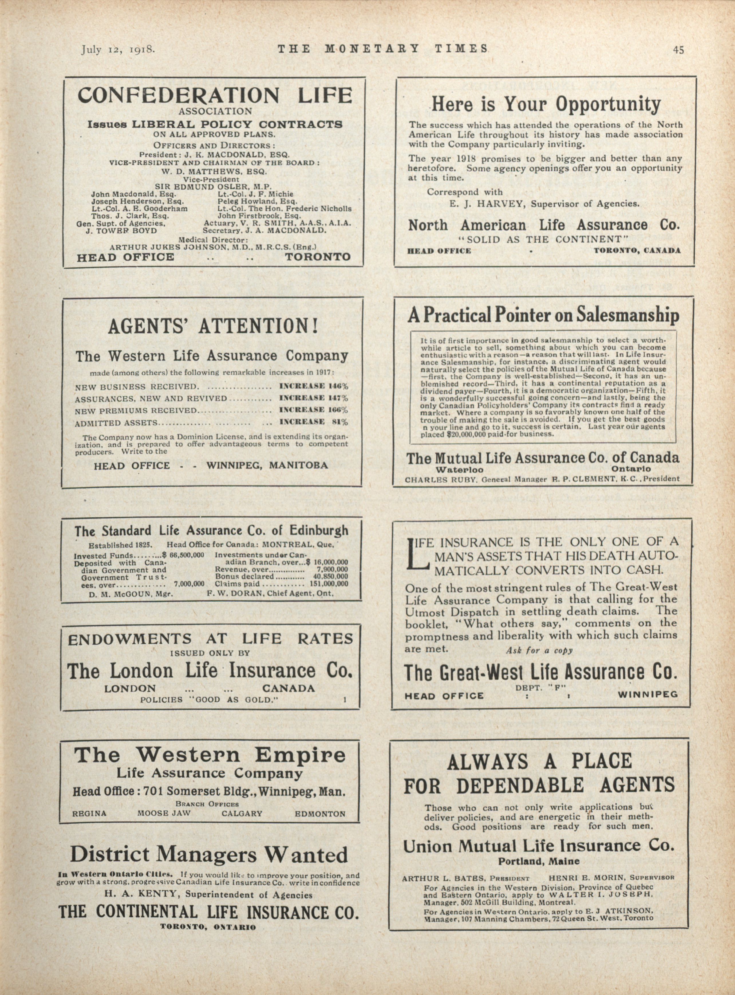 - The Monetary Times, trade review and insurance chronicle. : Volume 61 No. 2 (July 12, 1918)