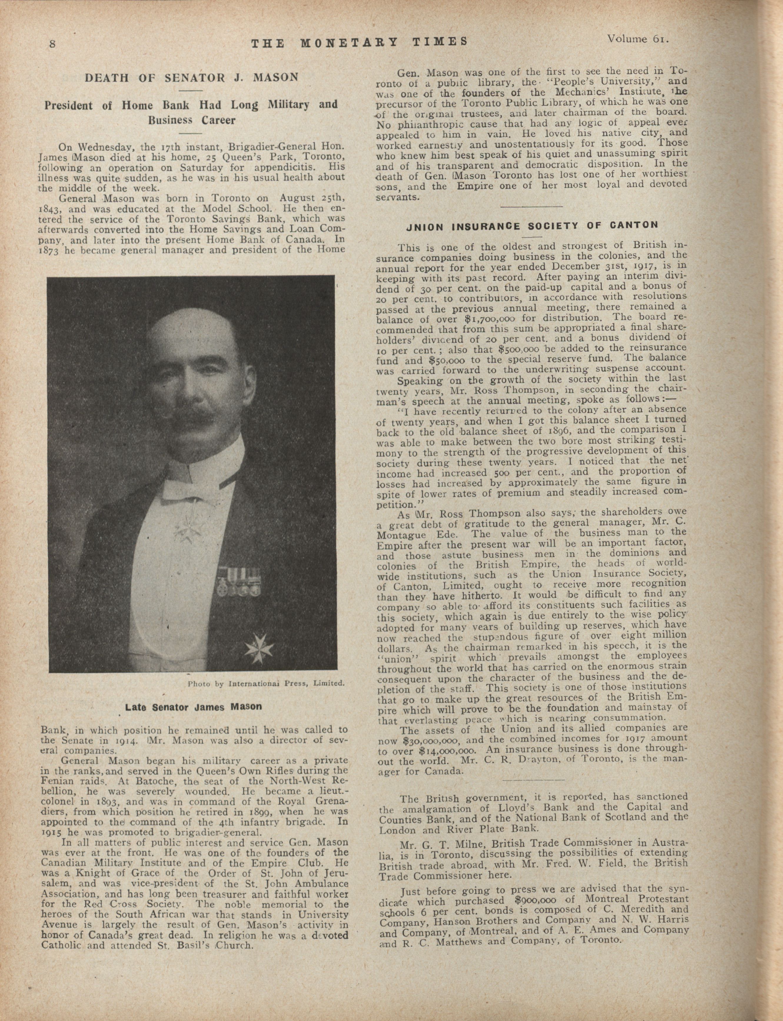 - The Monetary Times, trade review and insurance chronicle. : Volume 61 No. 3 (July 19, 1918)