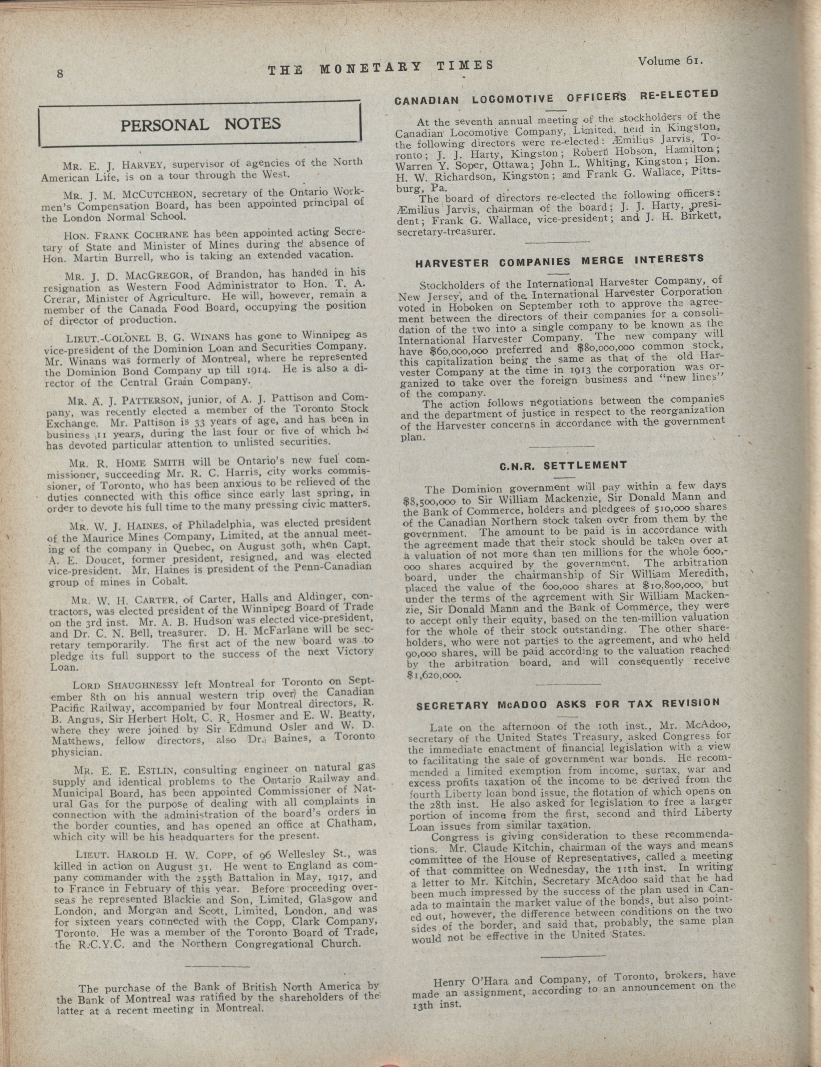 The monetary times, trade review and insurance chronicle : Volume 61 No. 11 (September 13, 1918)