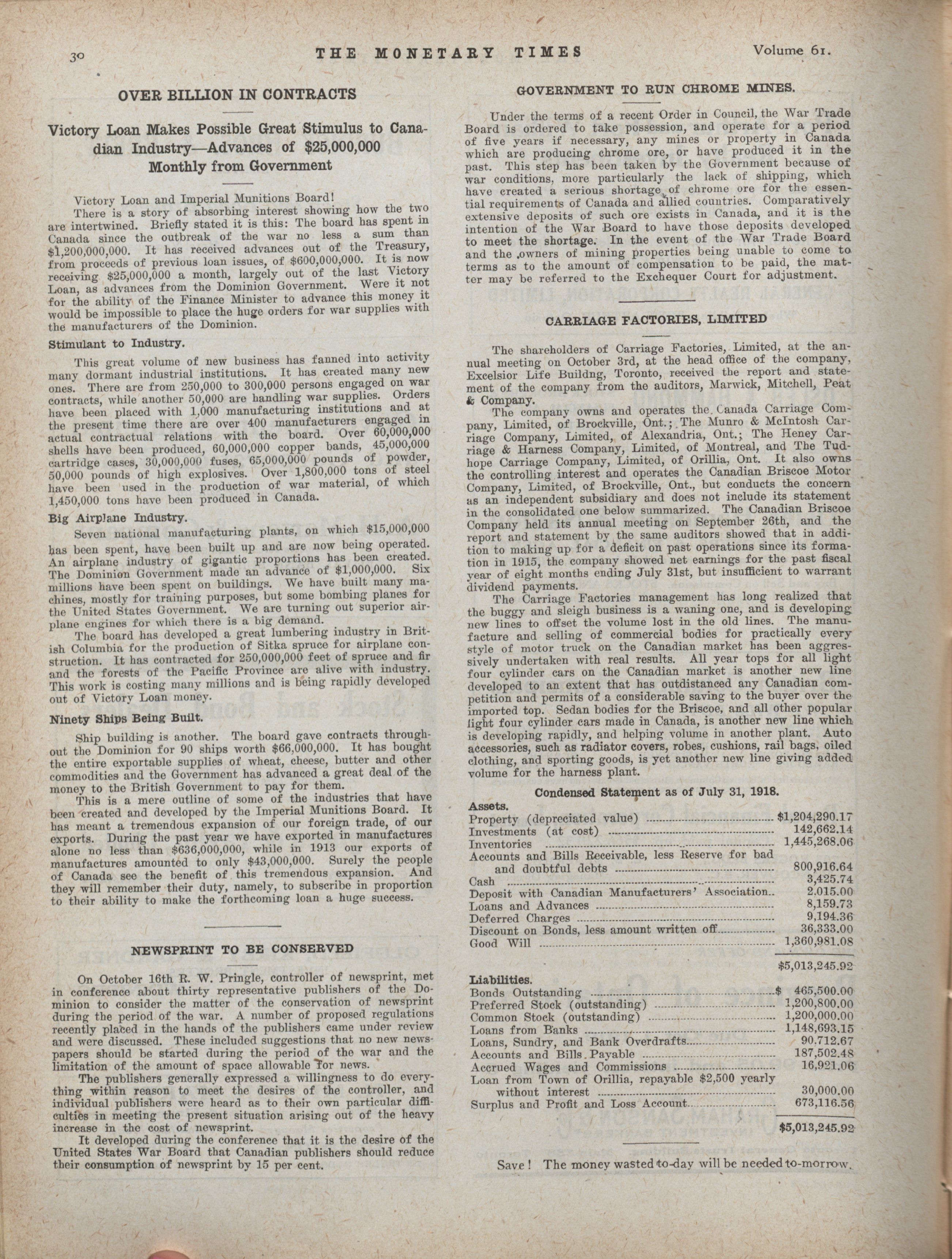 - The Monetary Times, trade review and insurance chronicle. : Volume 61 No. 17 (October 25, 1918)