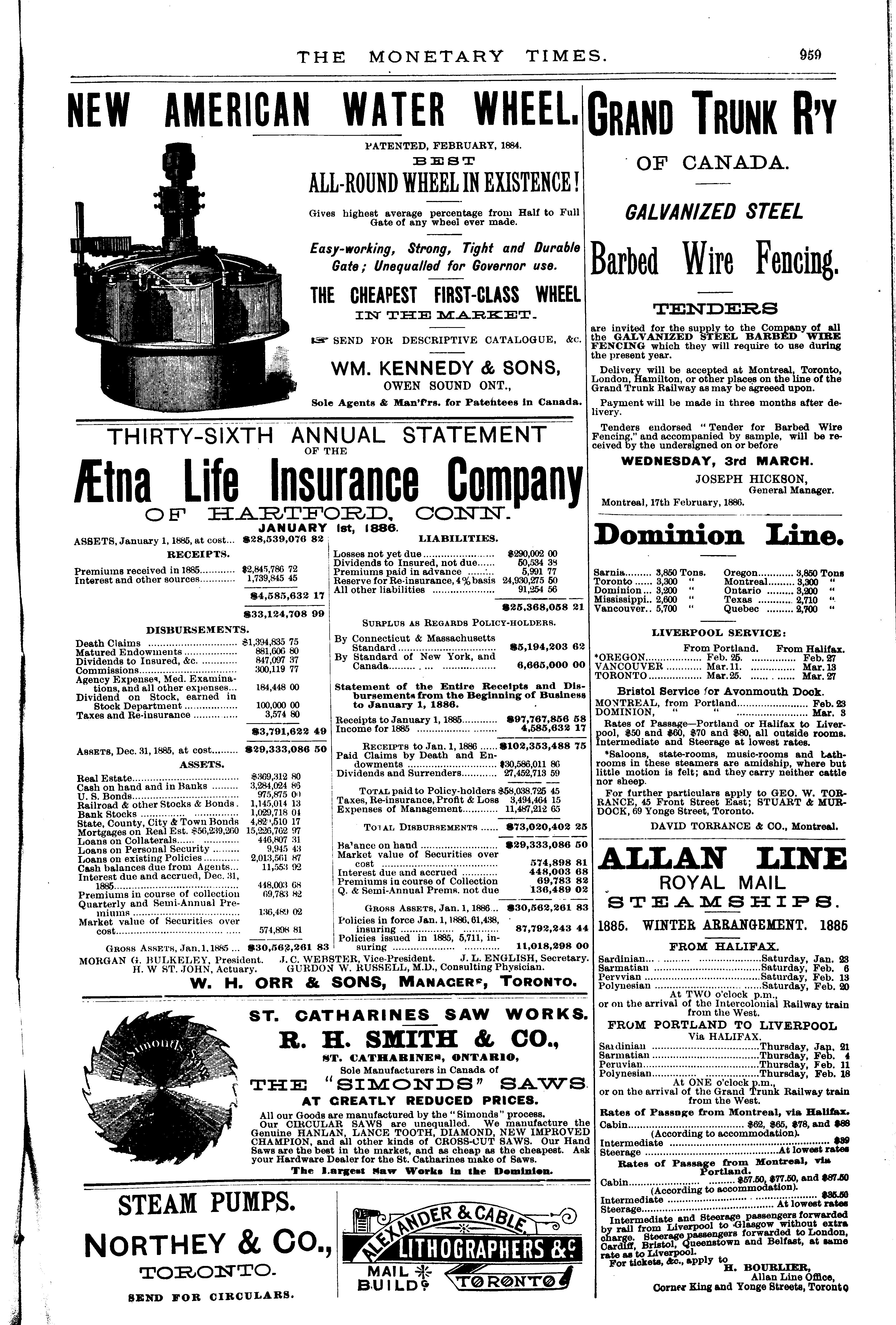 The monetary times, trade review and insurance chronicle : [Vol. 19, no. 34 (Feb. 19, 1886)]