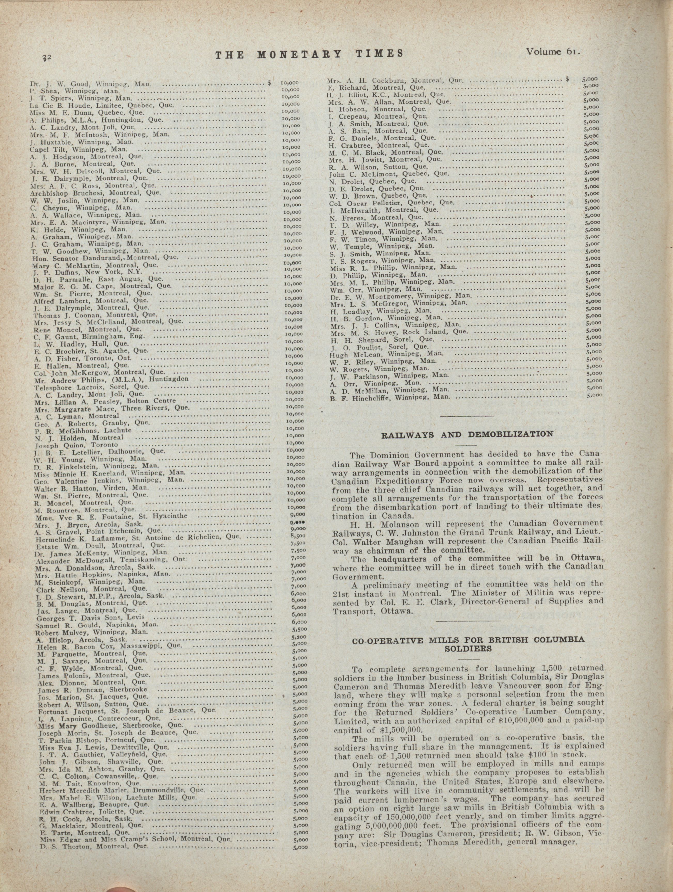 - The Monetary Times, trade review and insurance chronicle. : Volume 61 No. 22 (November 29, 1918)