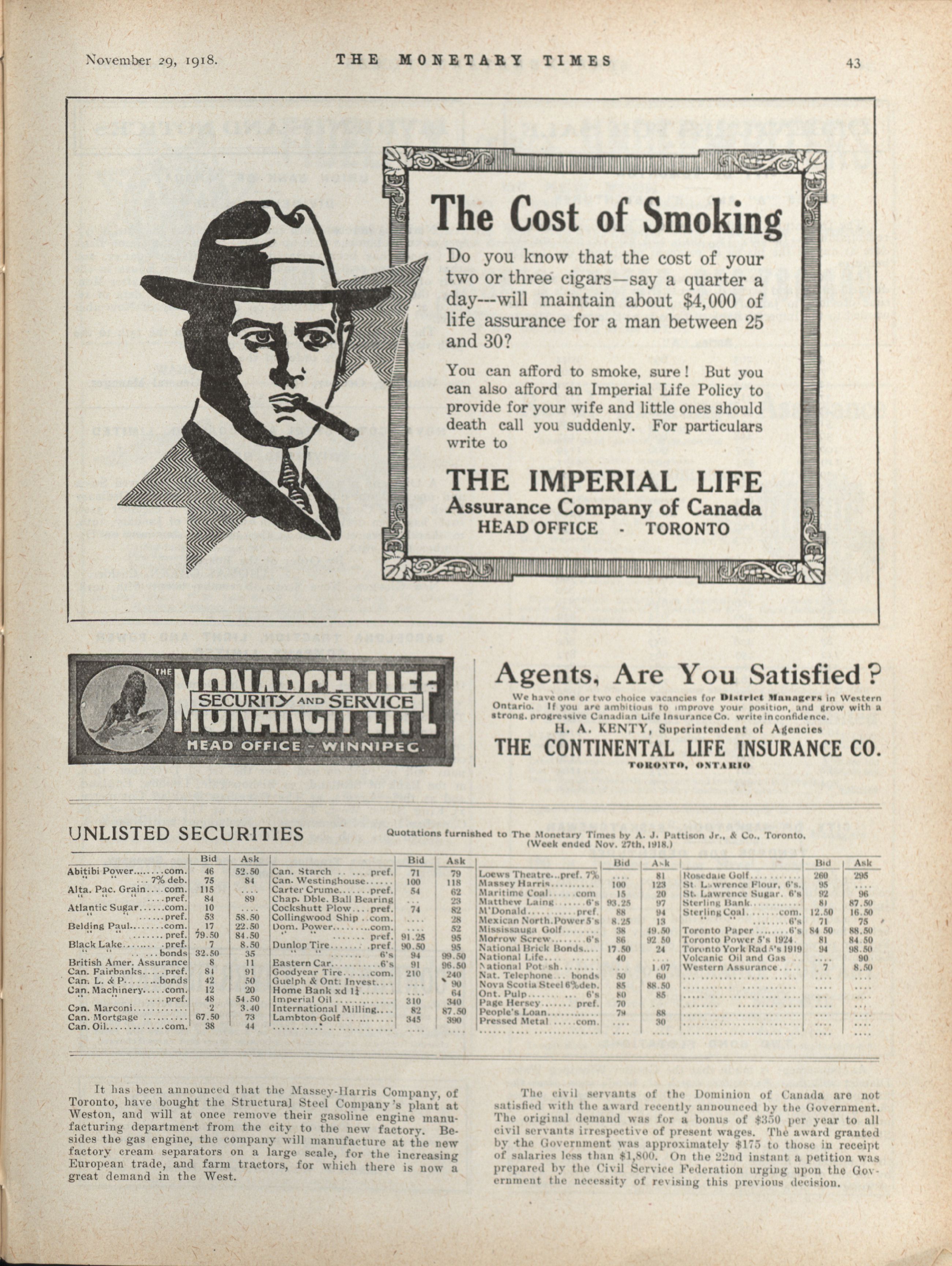 - The Monetary Times, trade review and insurance chronicle. : Volume 61 No. 22 (November 29, 1918)