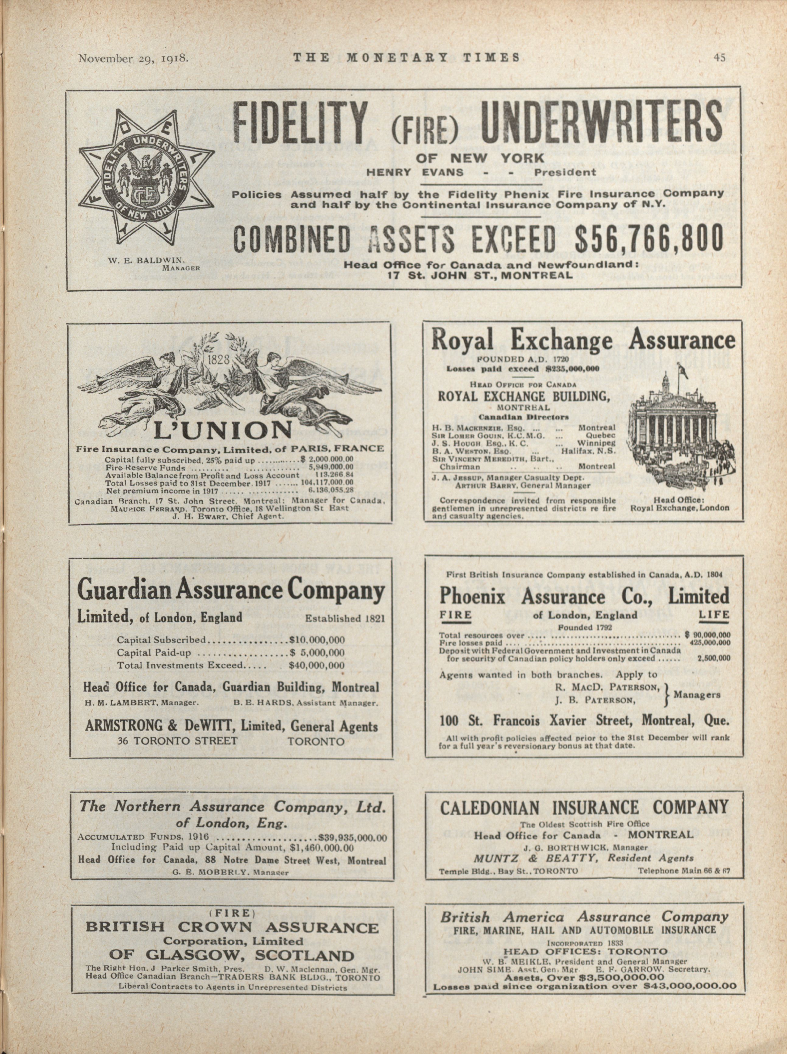 - The Monetary Times, trade review and insurance chronicle. : Volume 61 No. 22 (November 29, 1918)