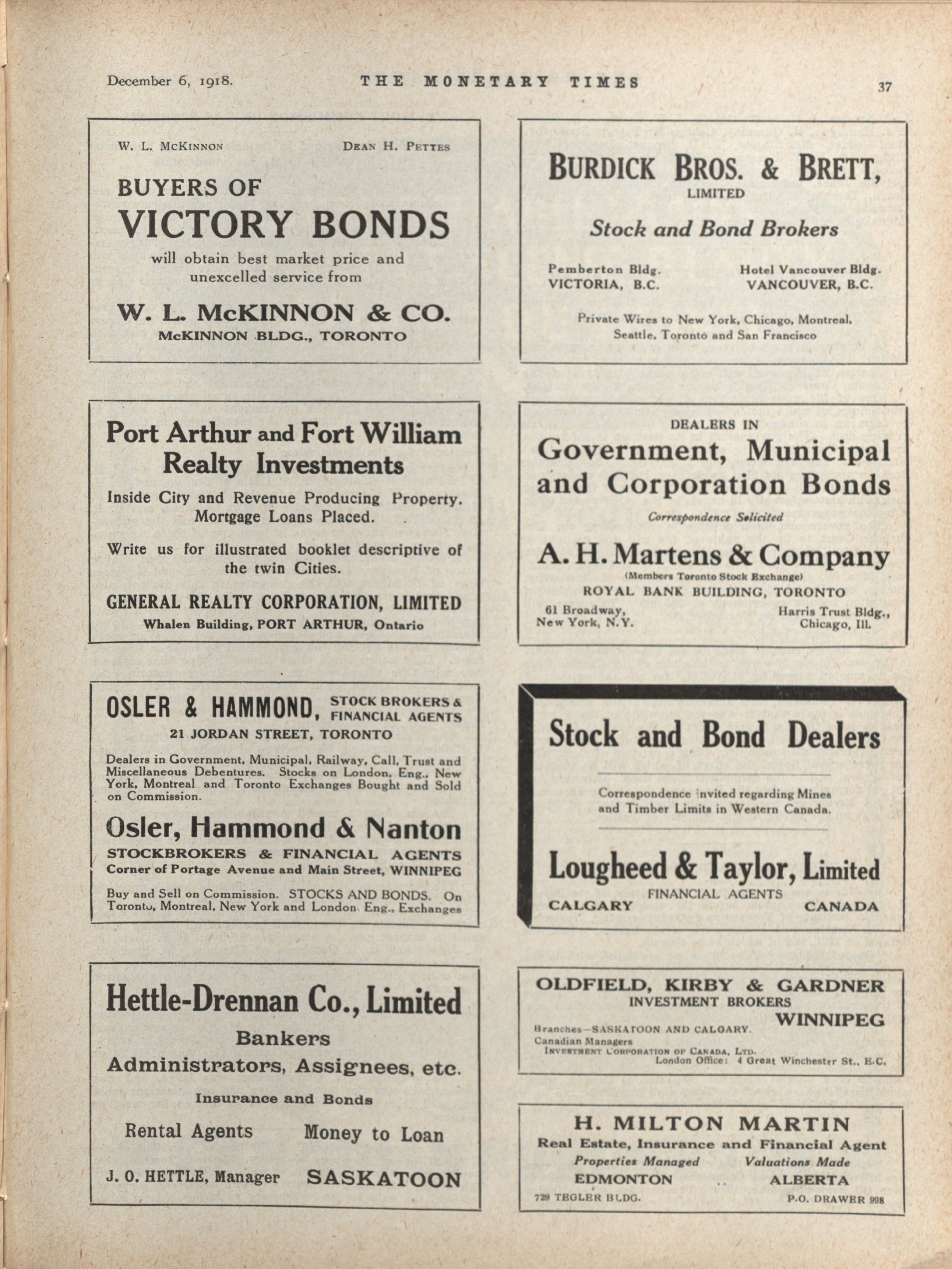 - The Monetary Times, trade review and insurance chronicle. : Volume 61 No. 23 (December 6, 1918)