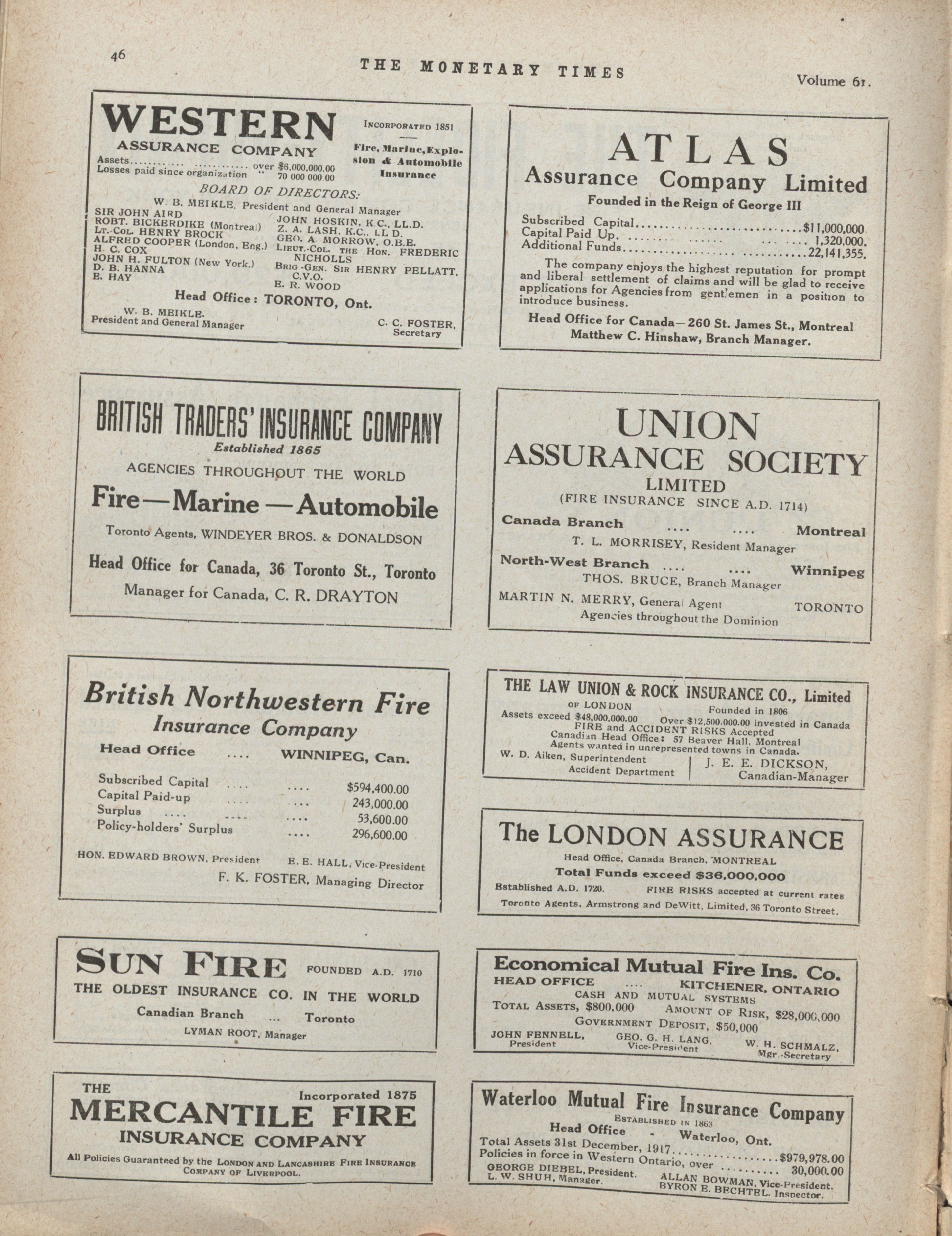 The Monetary Times, trade review and insurance chronicle. : Volume 61 No. 24 (December 13, 1918)