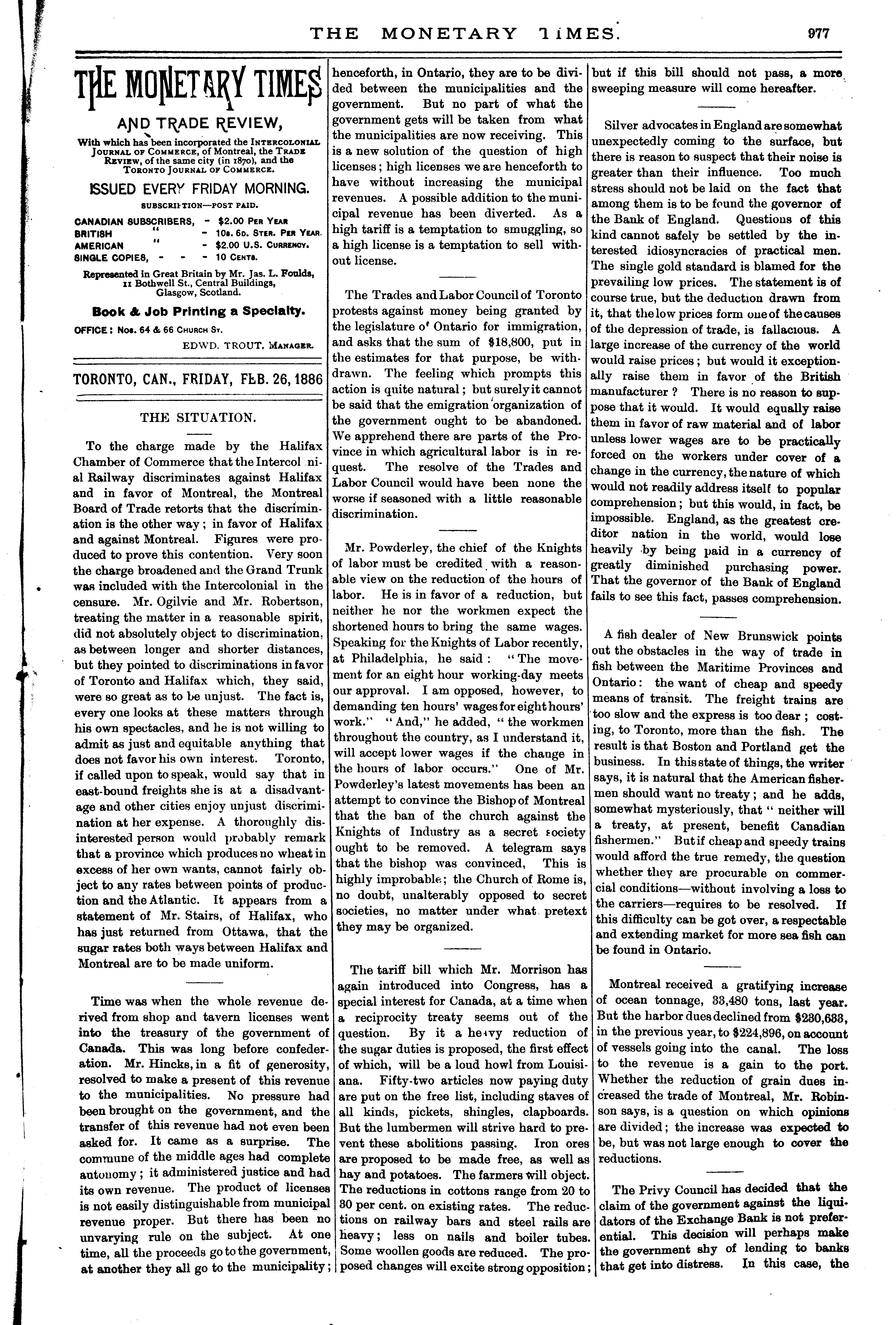 The monetary times, trade review and insurance chronicle : [Vol. 19, no. 35 (Feb. 26, 1886)]