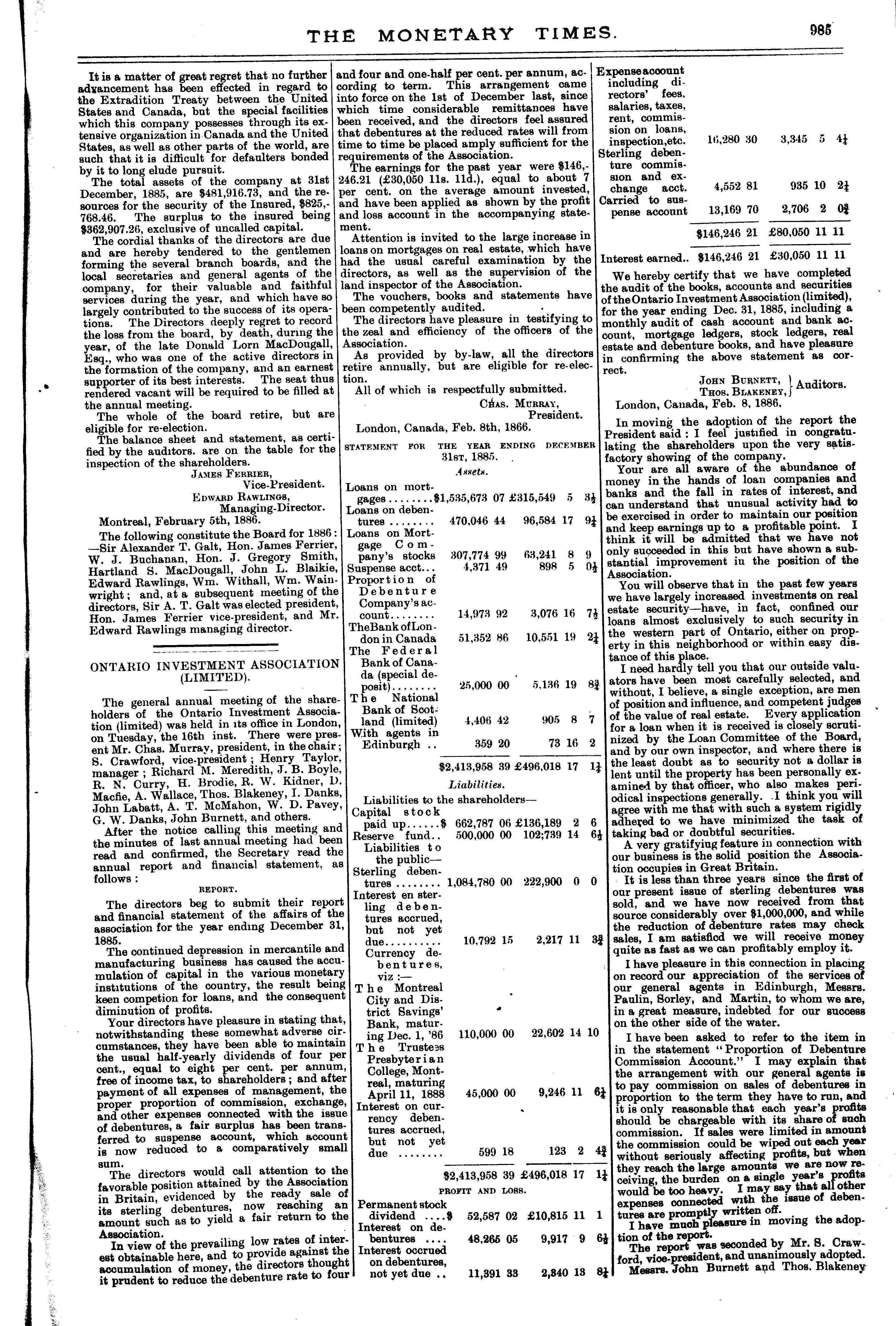 The monetary times, trade review and insurance chronicle : [Vol. 19, no. 35 (Feb. 26, 1886)]