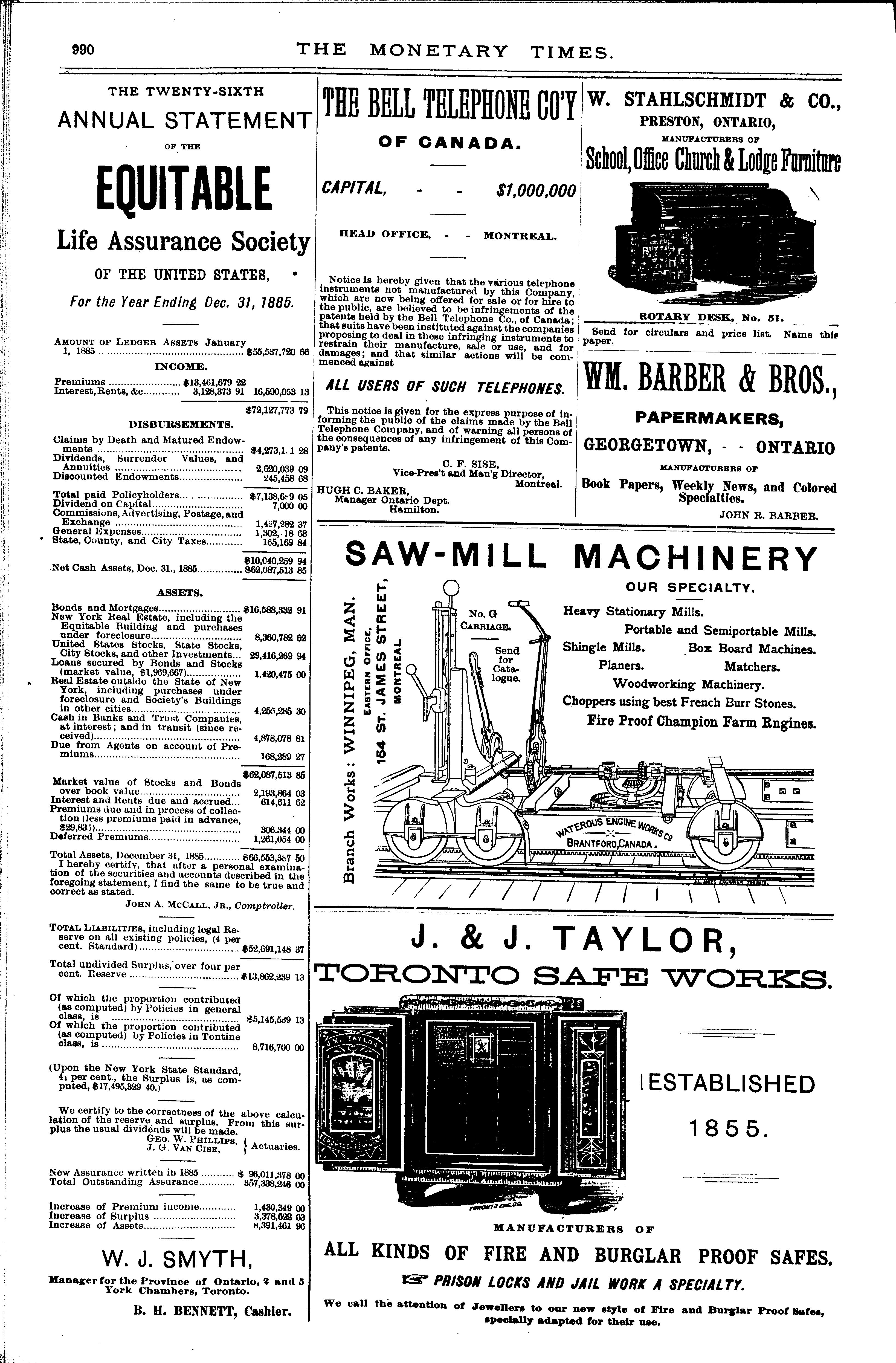 The monetary times, trade review and insurance chronicle : [Vol. 19, no. 35 (Feb. 26, 1886)]