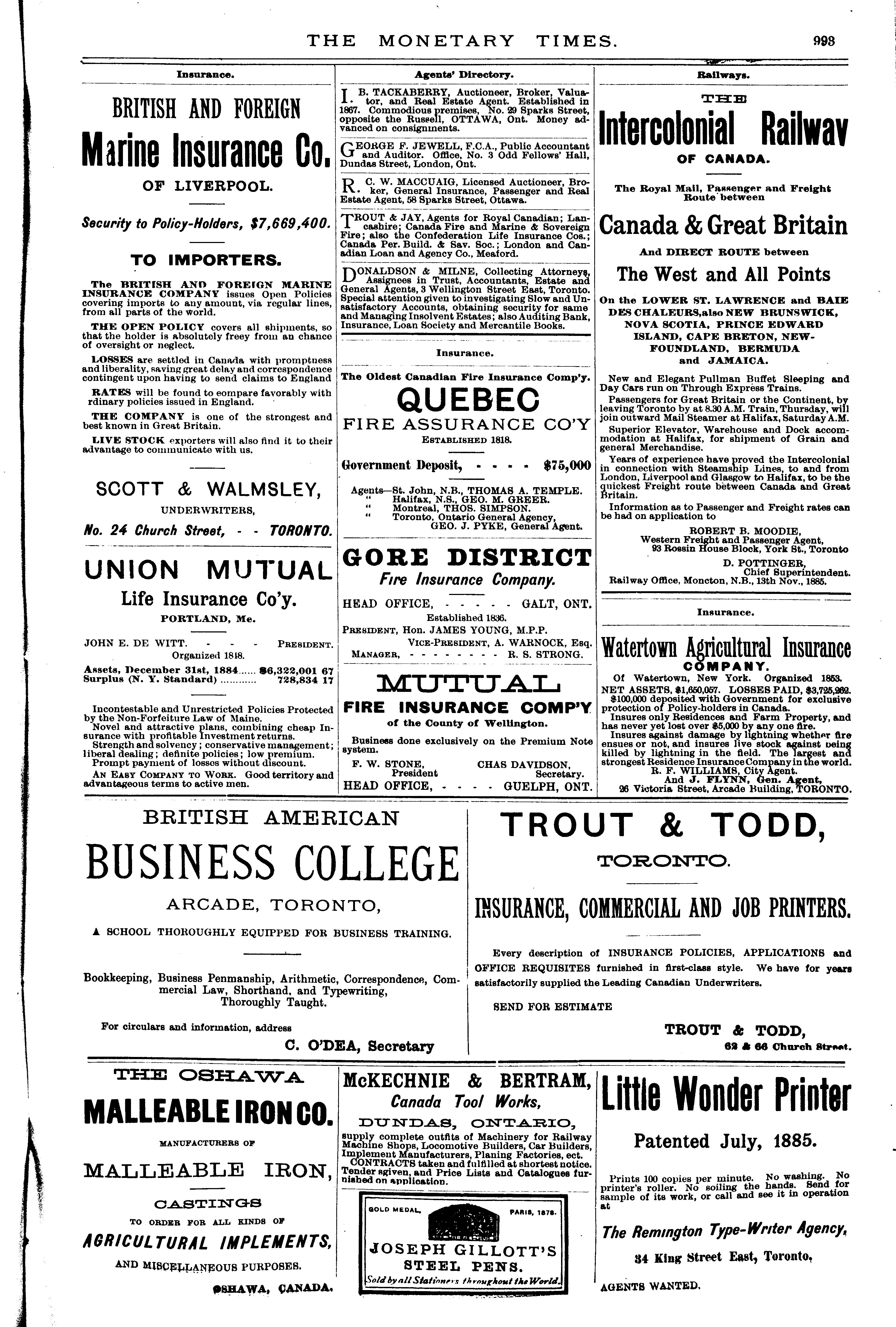The monetary times, trade review and insurance chronicle : [Vol. 19, no. 35 (Feb. 26, 1886)]