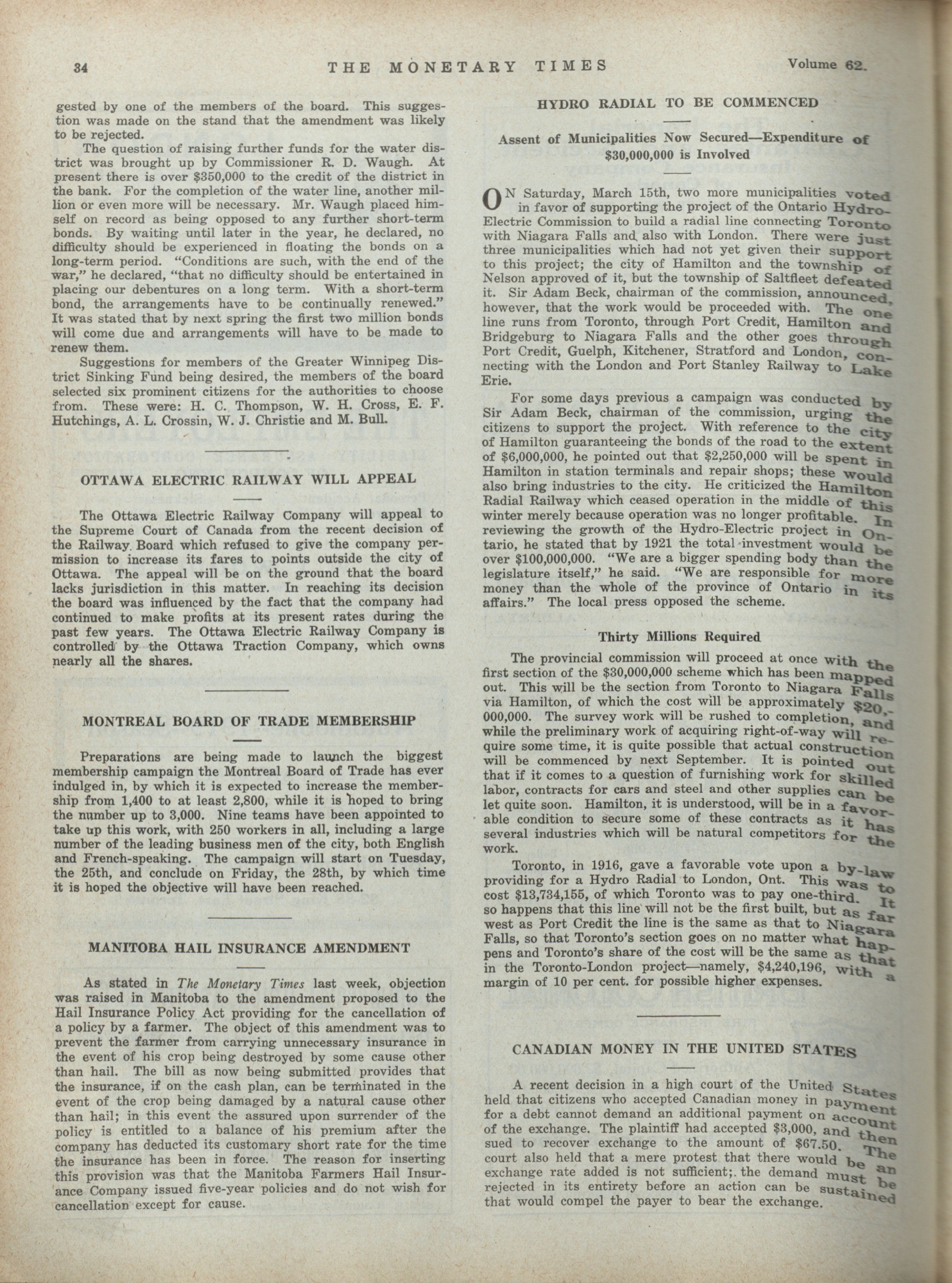- The Monetary Times, trade review and insurance chronicle. : Volume 62 No. 12 (March 21, 1919)