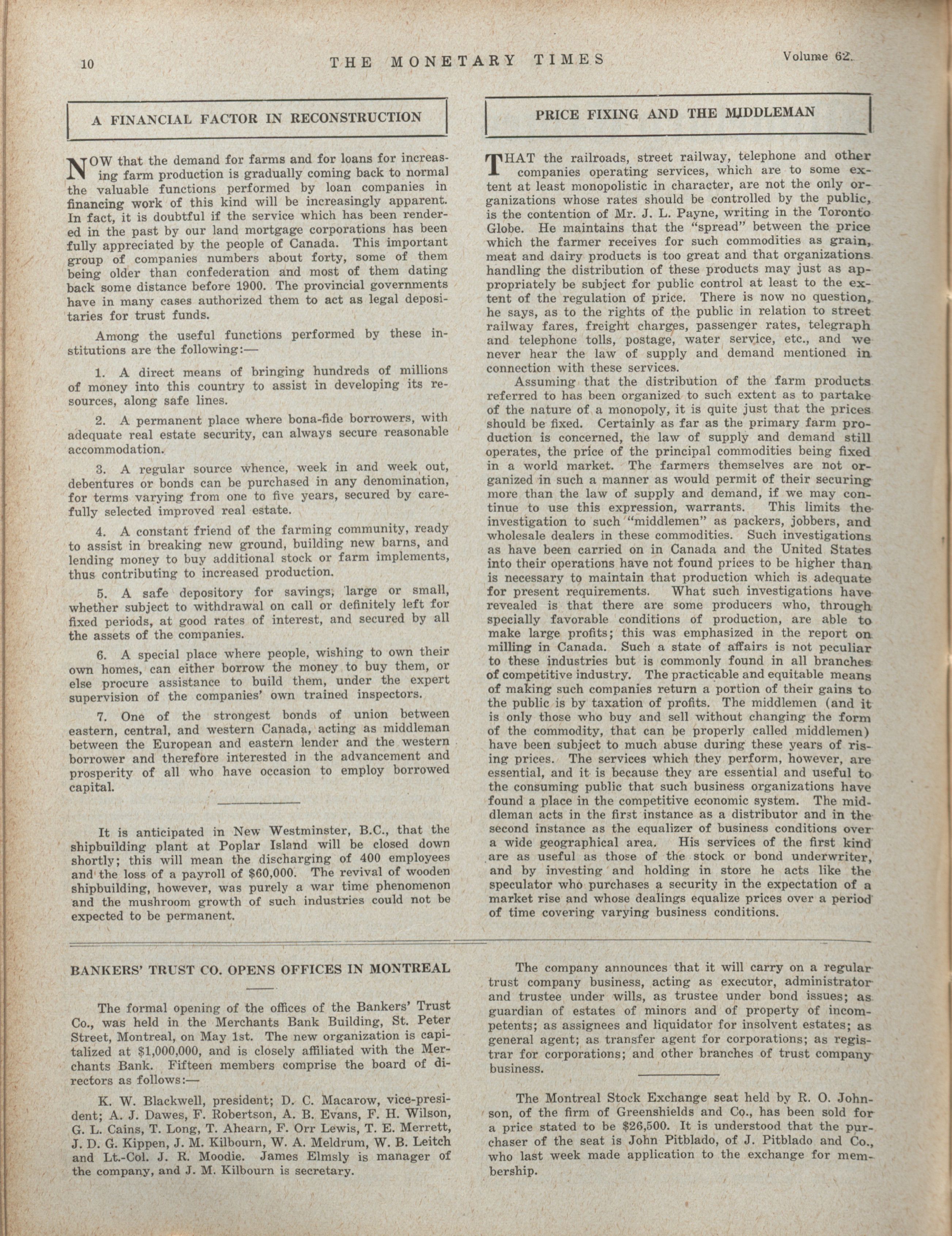 The monetary times, trade review and insurance chronicle : Volume 62 No. 18 (May 2, 1919)