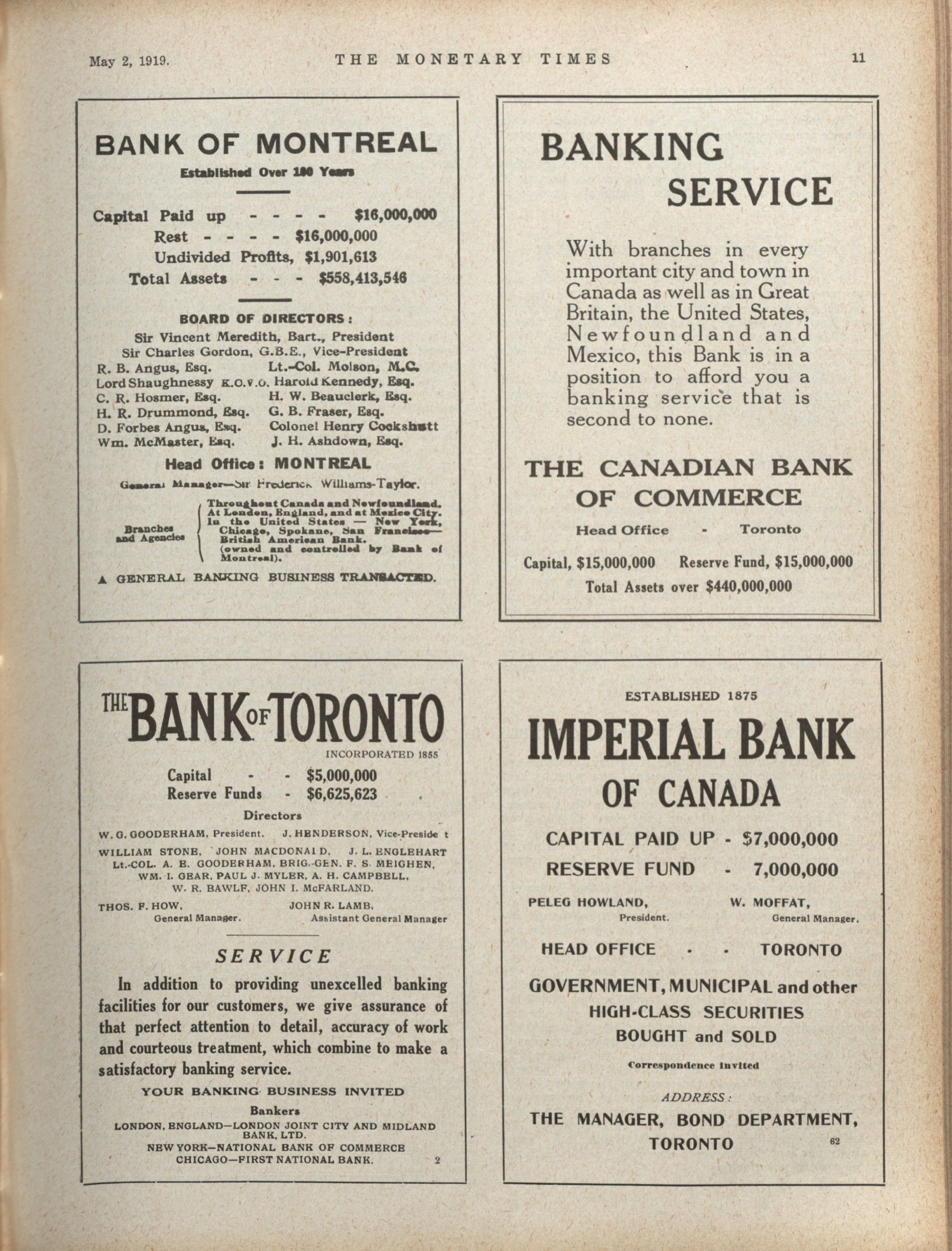 - The Monetary Times, trade review and insurance chronicle. : Volume 62 No. 18 (May 2, 1919)
