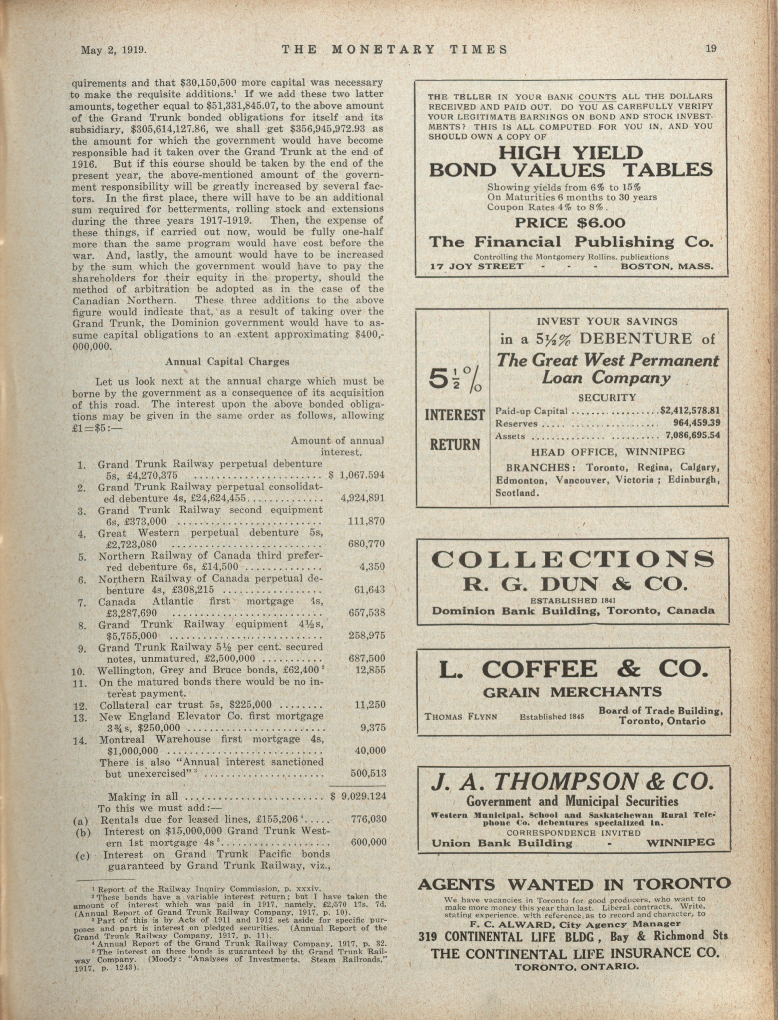 - The Monetary Times, trade review and insurance chronicle. : Volume 62 No. 18 (May 2, 1919)