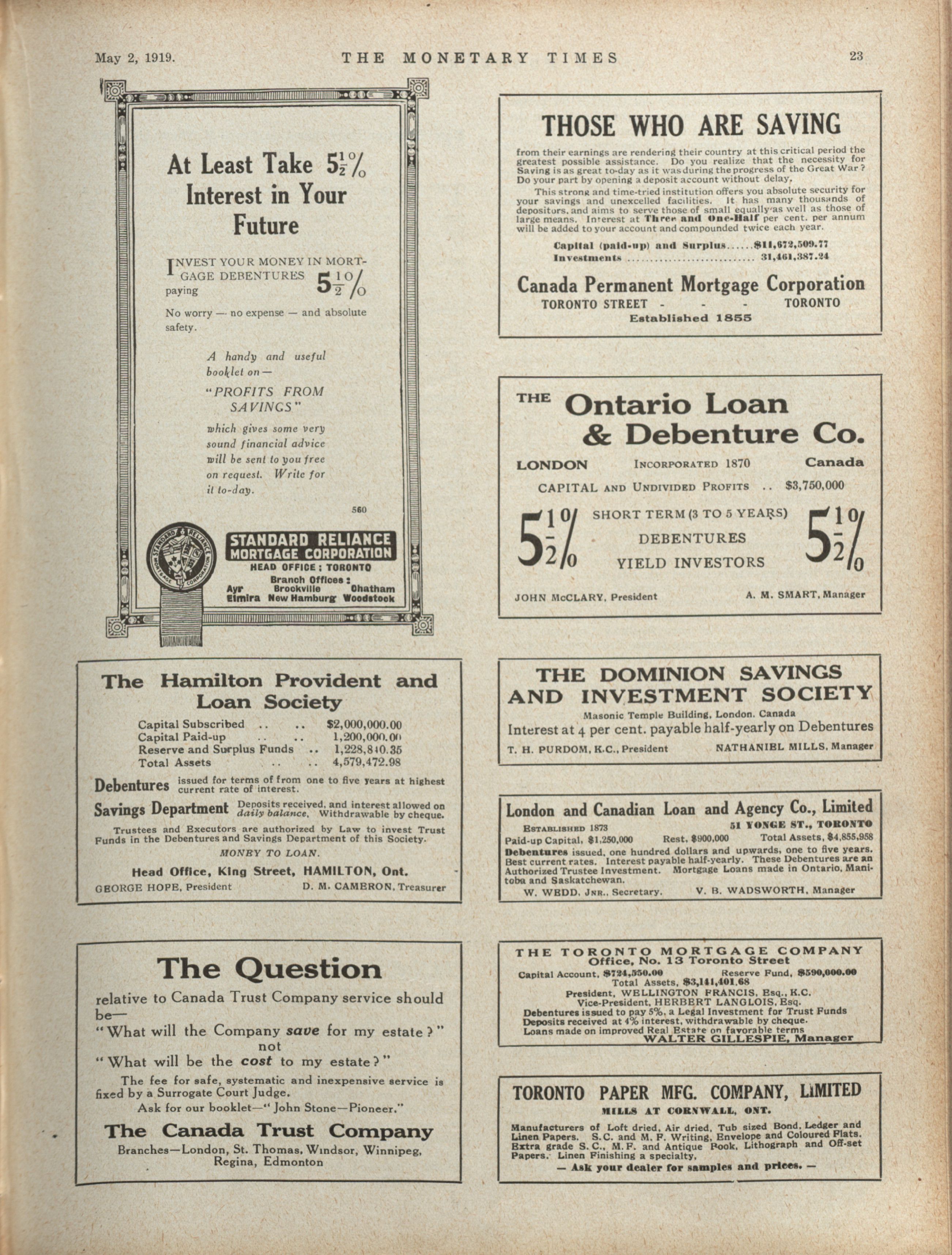 The Monetary Times, trade review and insurance chronicle. : Volume 62 No. 18 (May 2, 1919)