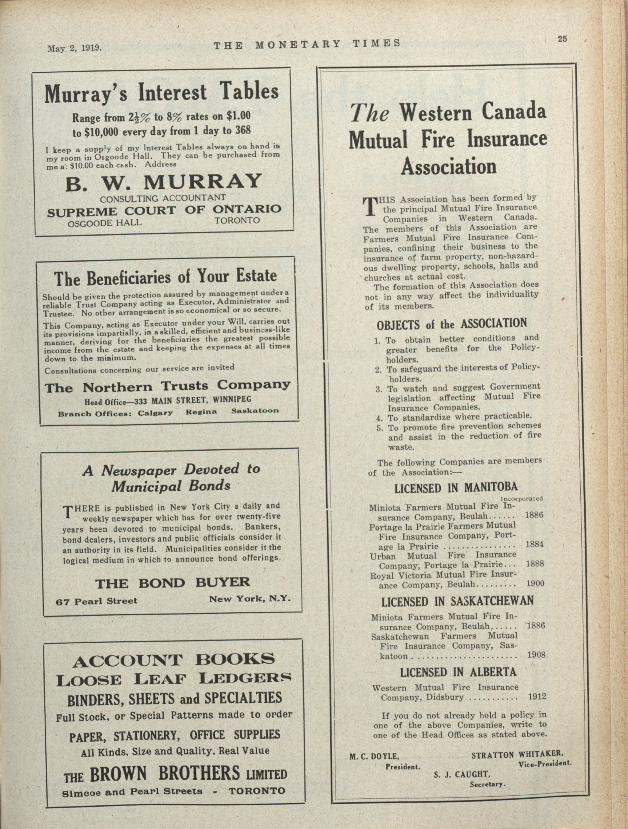 - The Monetary Times, trade review and insurance chronicle. : Volume 62 No. 18 (May 2, 1919)