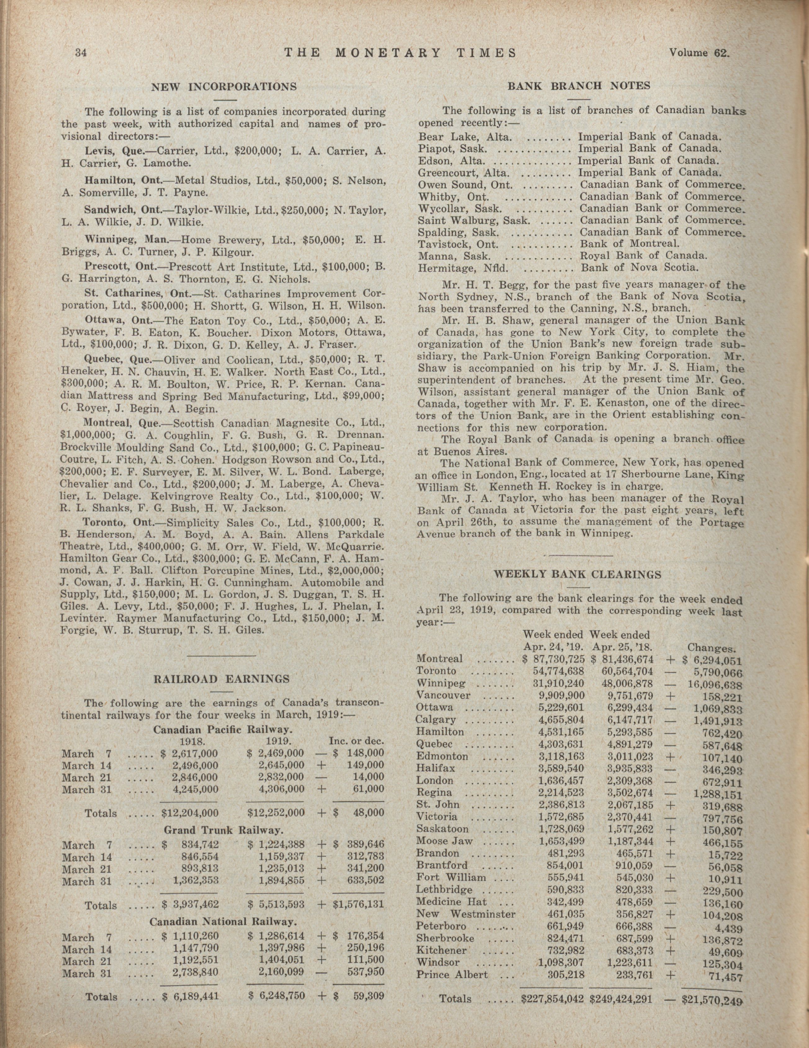 - The Monetary Times, trade review and insurance chronicle. : Volume 62 No. 18 (May 2, 1919)