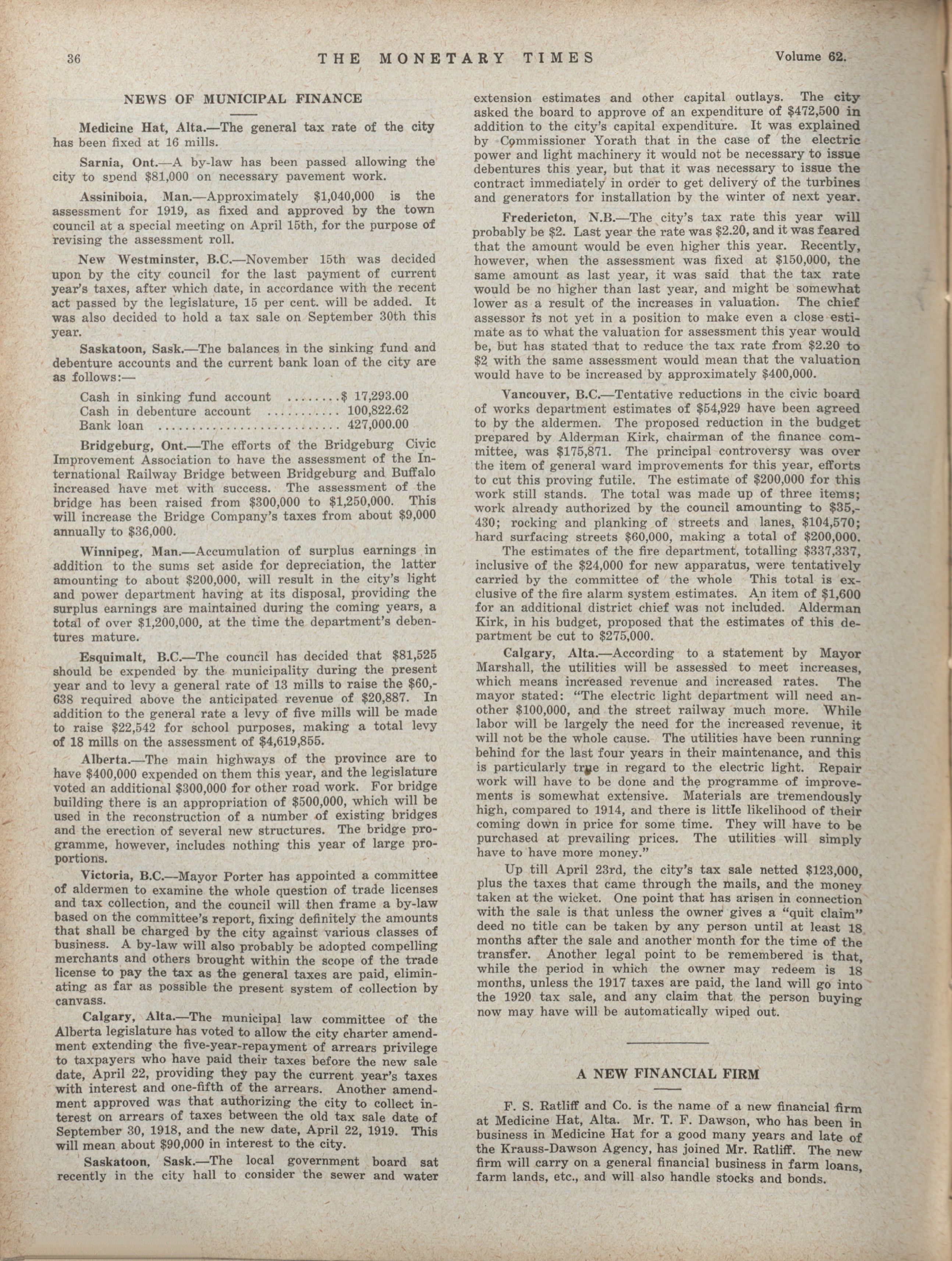 - The Monetary Times, trade review and insurance chronicle. : Volume 62 No. 18 (May 2, 1919)