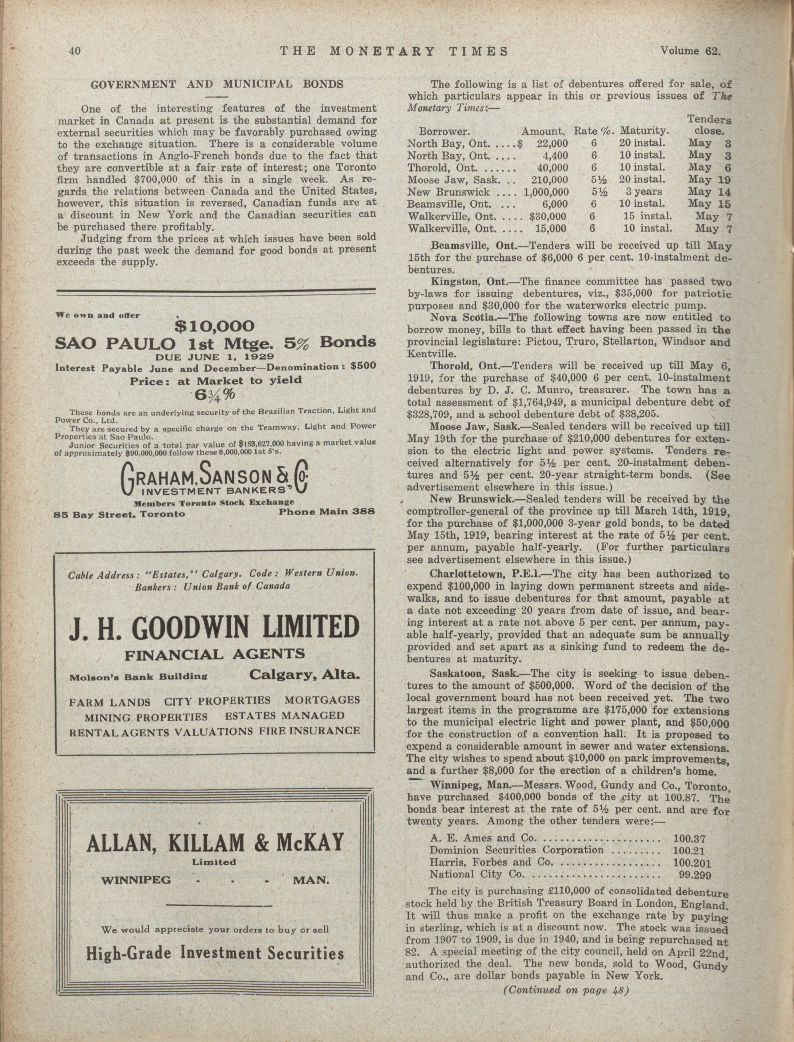 - The Monetary Times, trade review and insurance chronicle. : Volume 62 No. 18 (May 2, 1919)