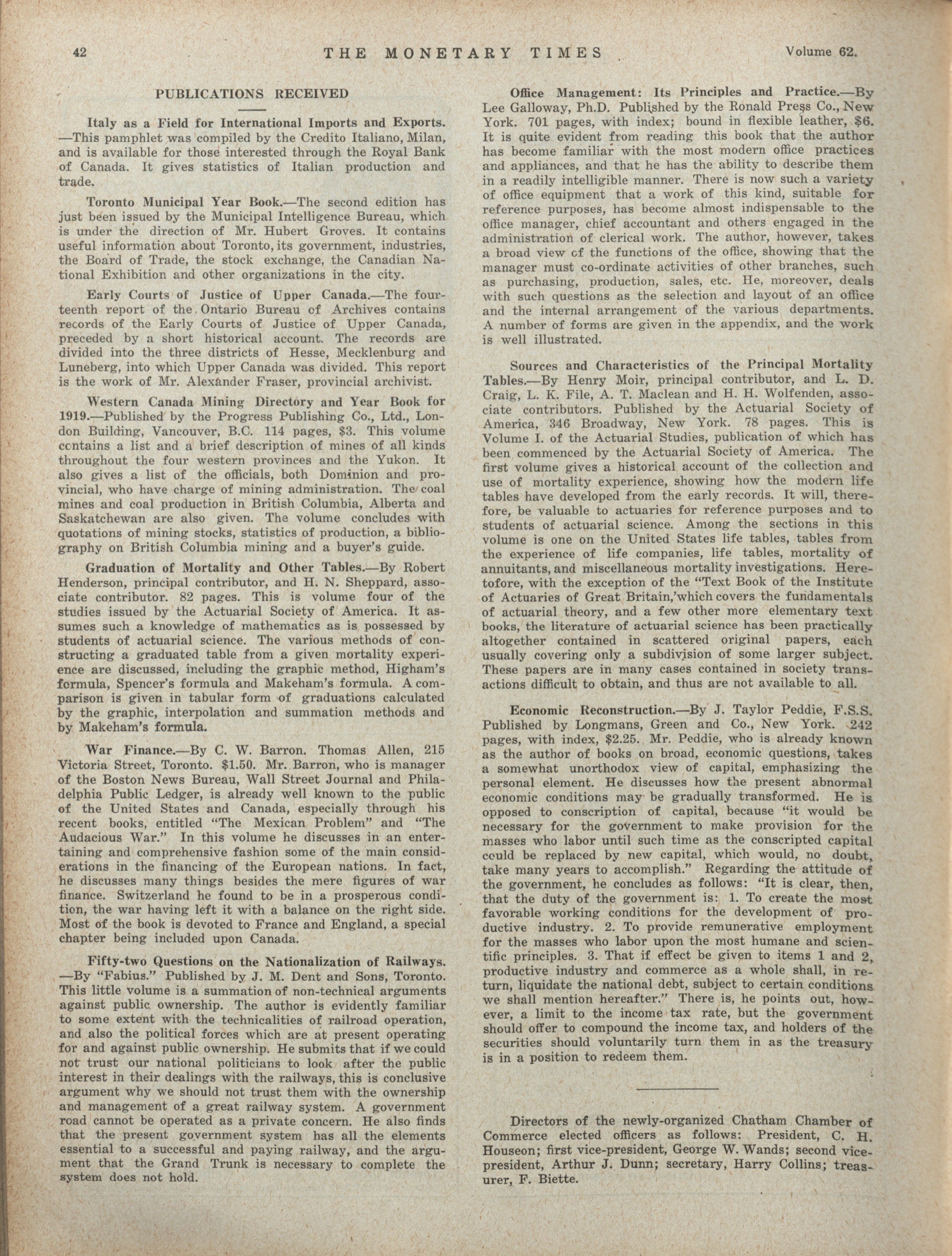 The monetary times, trade review and insurance chronicle : Volume 62 No. 22 (May 30, 1919)