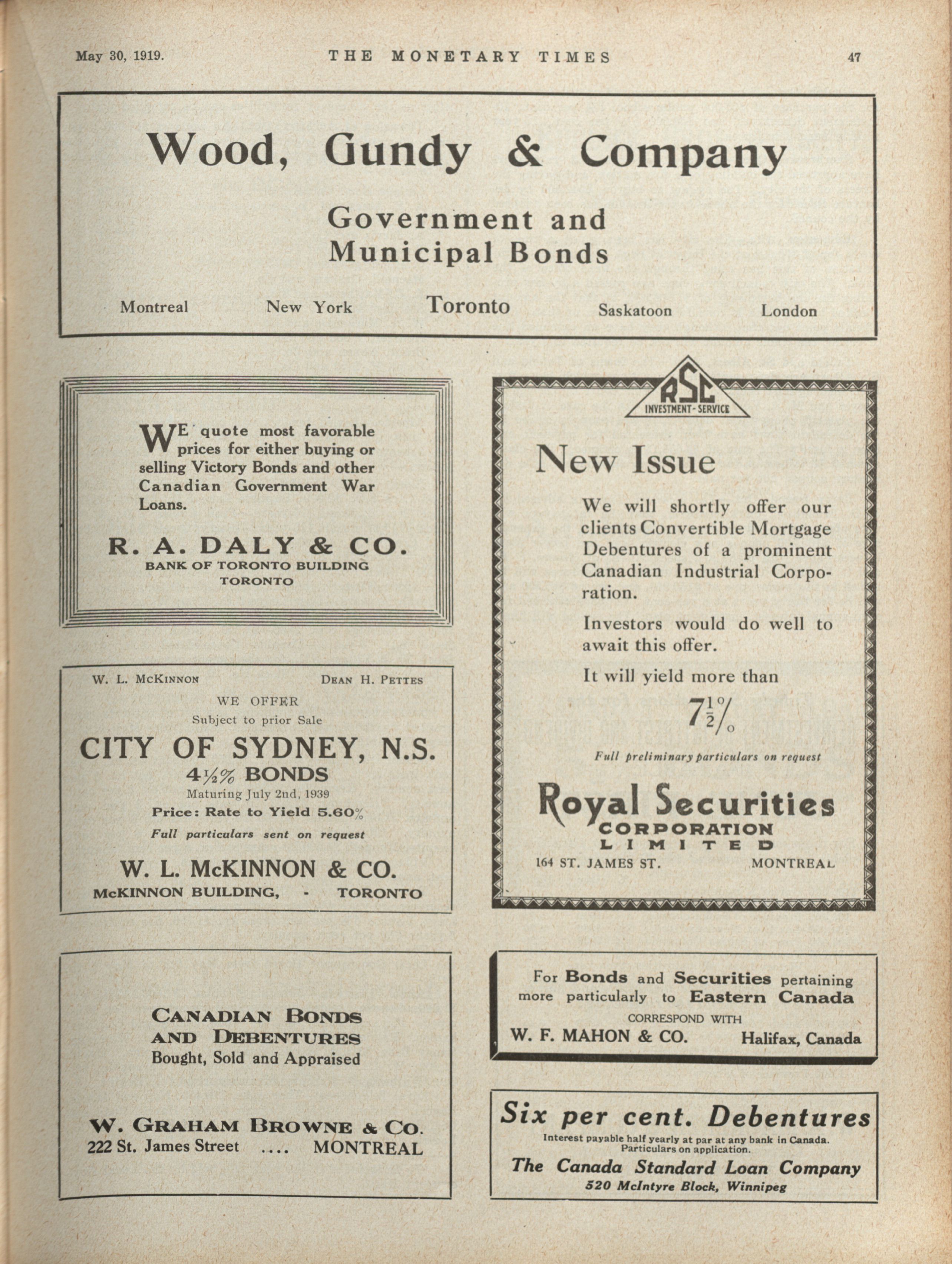 - The Monetary Times, trade review and insurance chronicle. : Volume 62 No. 22 (May 30, 1919)