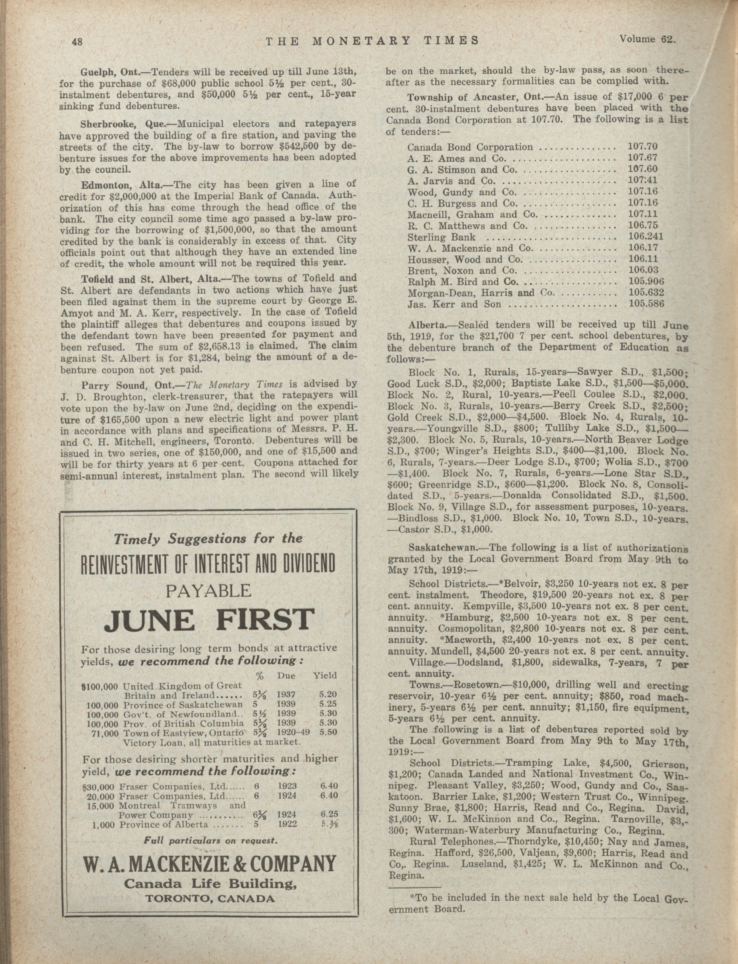 The Monetary Times, trade review and insurance chronicle. : Volume 62 No. 22 (May 30, 1919)
