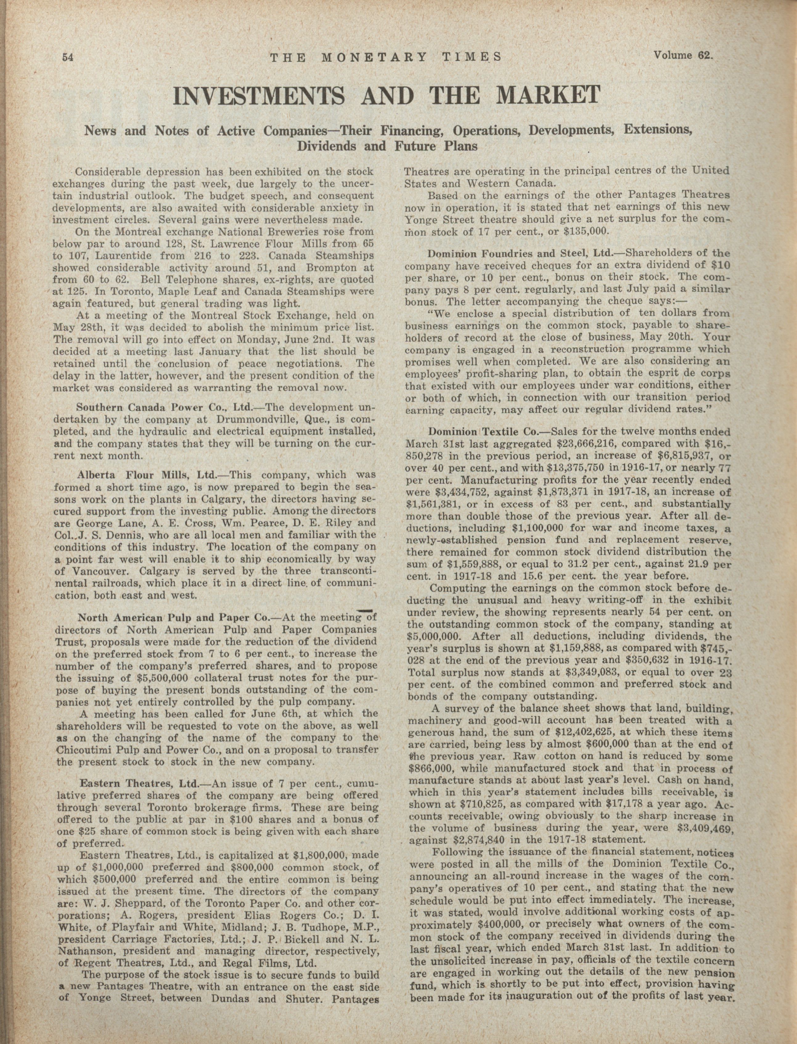 - The Monetary Times, trade review and insurance chronicle. : Volume 62 No. 22 (May 30, 1919)