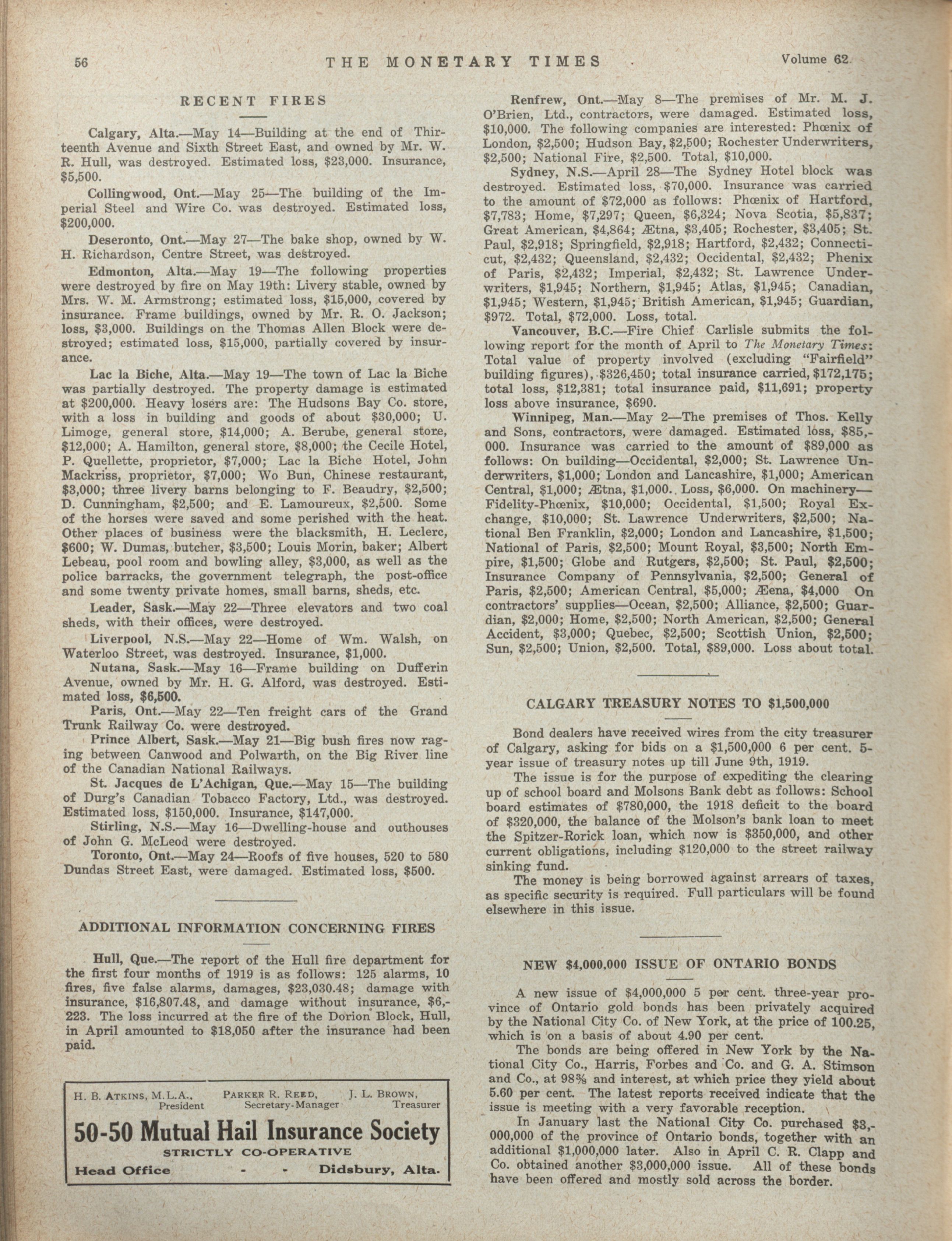 - The Monetary Times, trade review and insurance chronicle. : Volume 62 No. 22 (May 30, 1919)