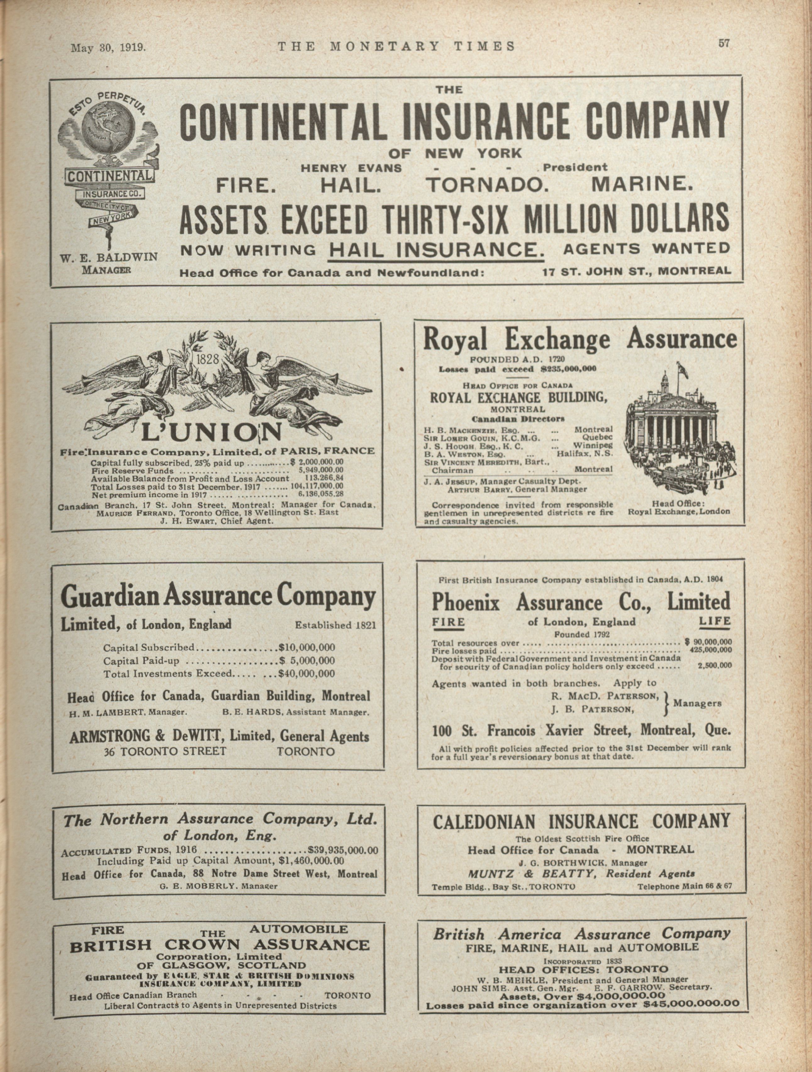 The Monetary Times, trade review and insurance chronicle. : Volume 62 No. 22 (May 30, 1919)