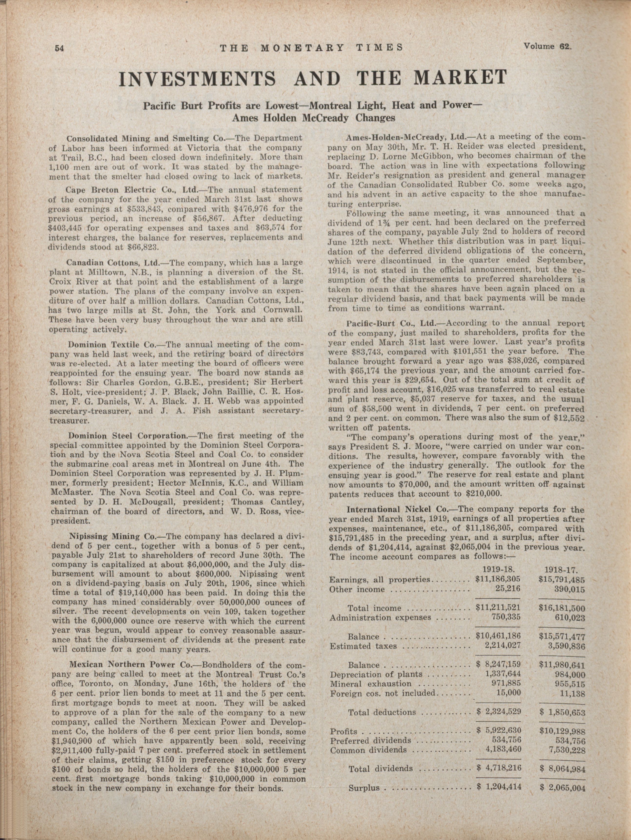 - The Monetary Times, trade review and insurance chronicle. : Volume 62 No. 23 (June 6, 1919)