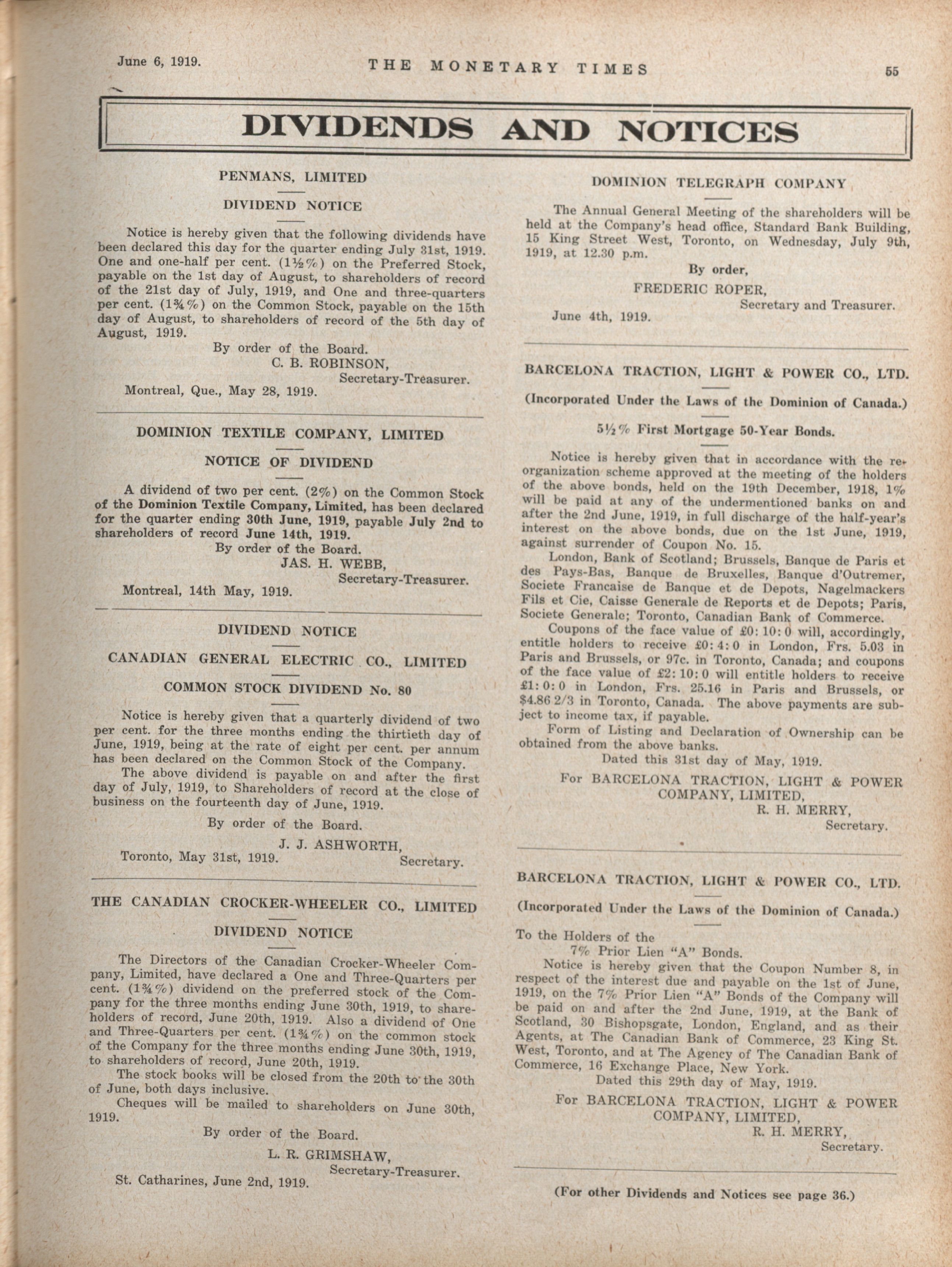 The Monetary Times, trade review and insurance chronicle. : Volume 62 No. 23 (June 6, 1919)