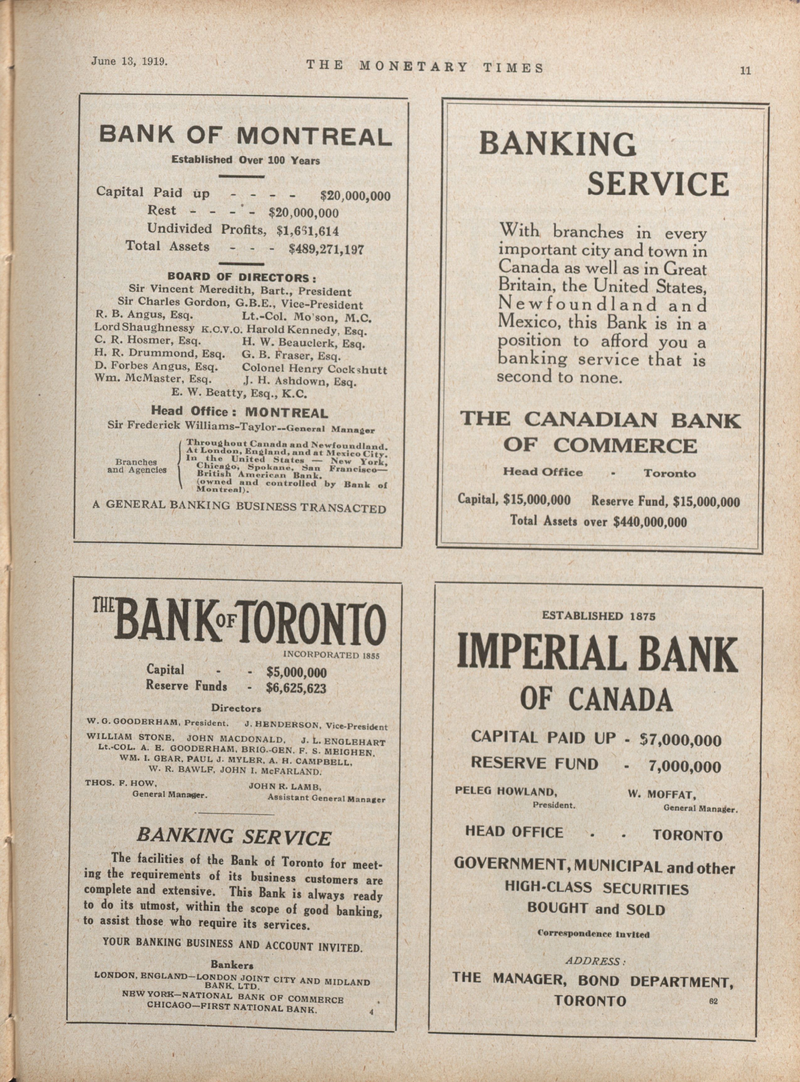 - The Monetary Times, trade review and insurance chronicle. : Volume 62 No. 24 (June 13, 1919)
