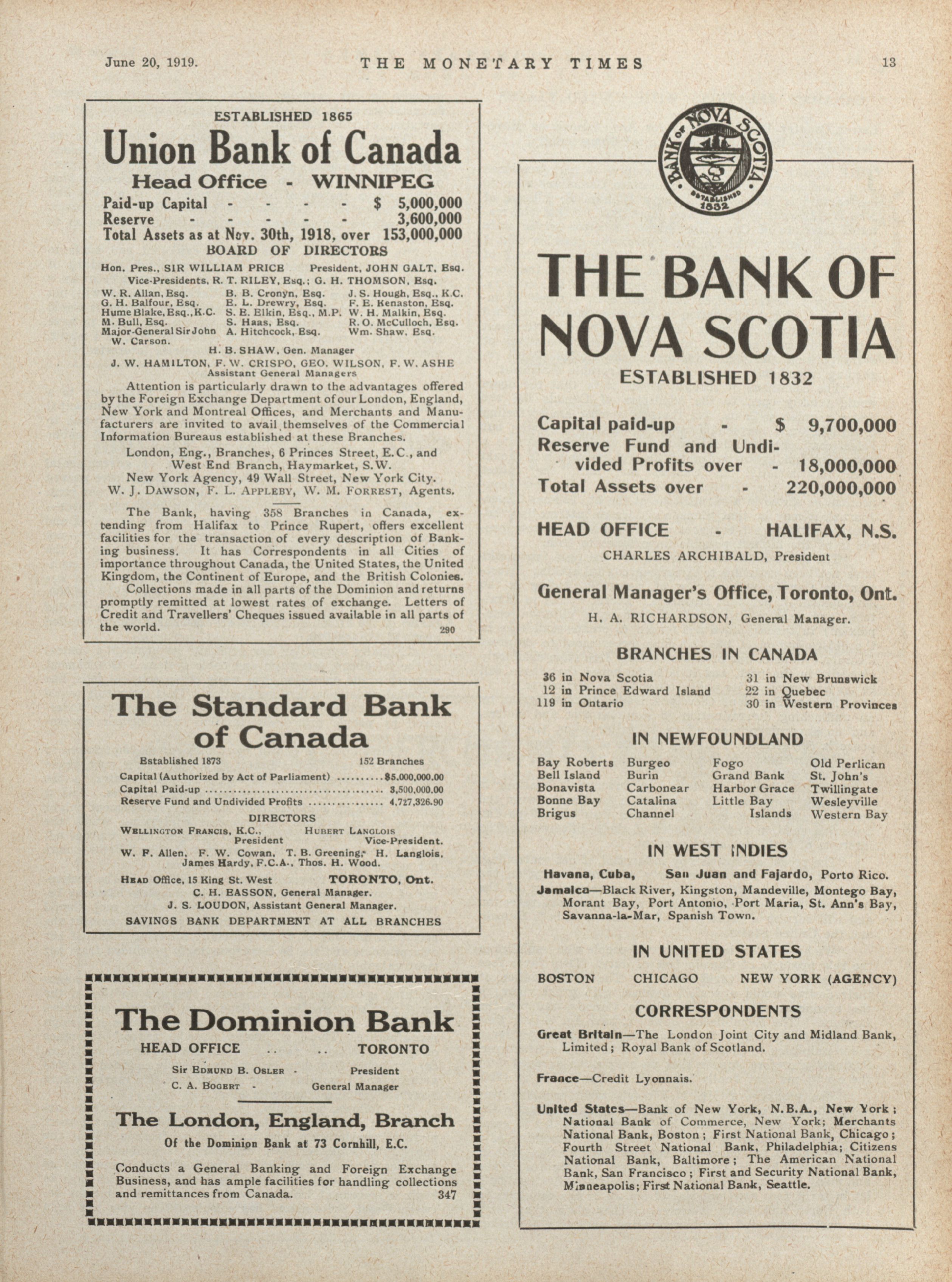 - The Monetary Times, trade review and insurance chronicle. : Volume 62 No. 24 (June 13, 1919)