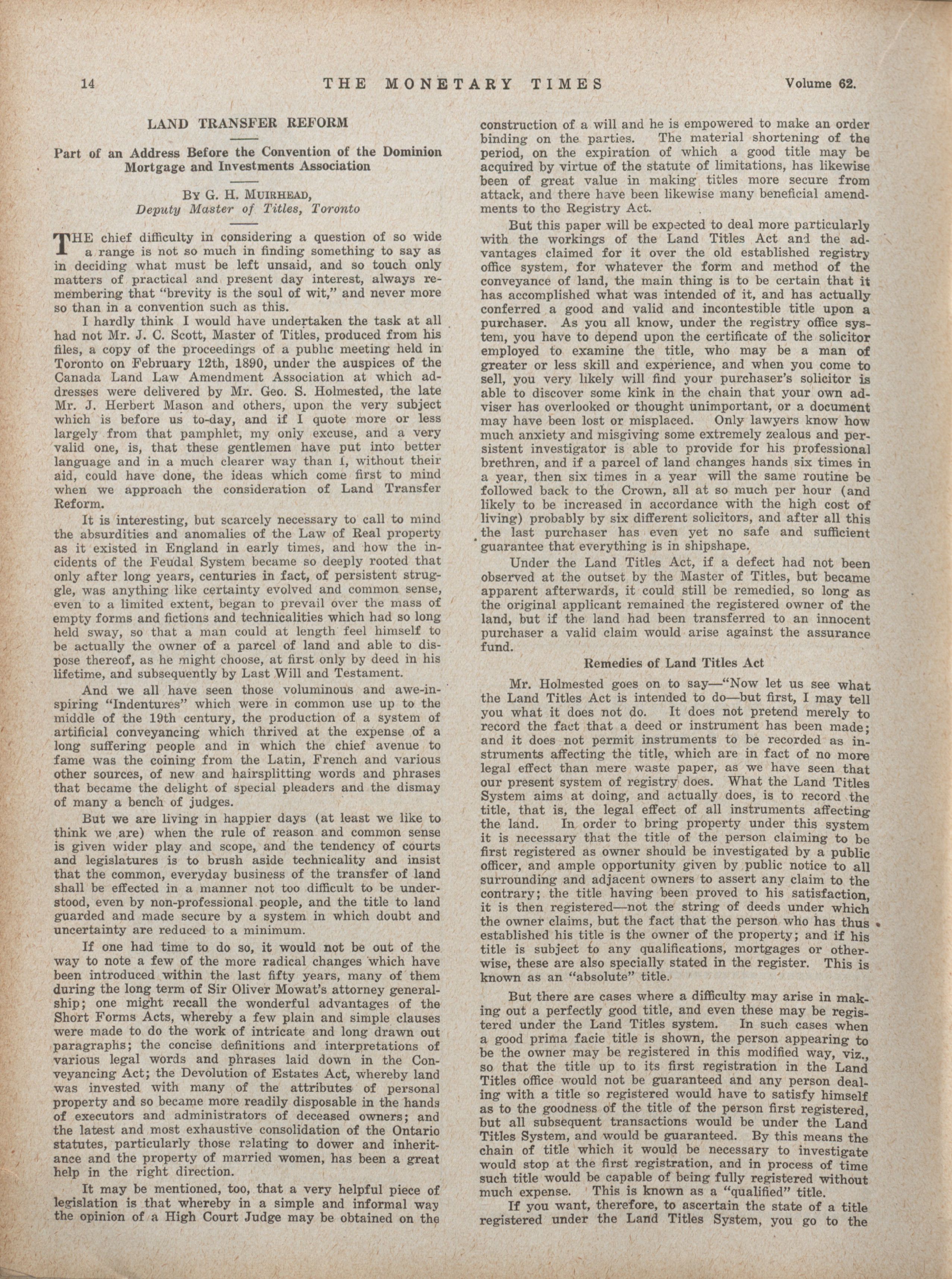 - The Monetary Times, trade review and insurance chronicle. : Volume 62 No. 24 (June 13, 1919)