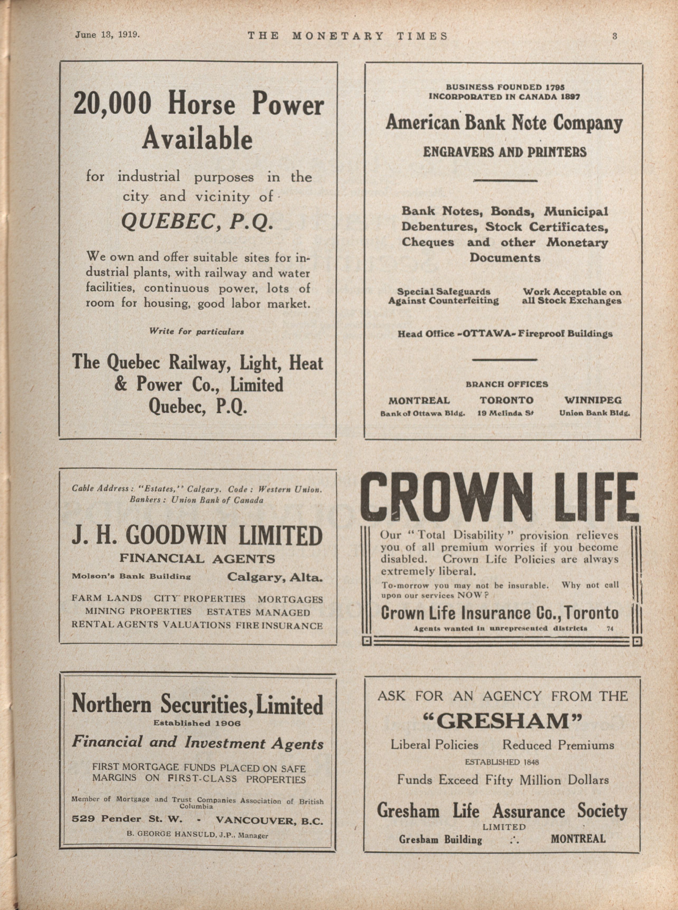 - The Monetary Times, trade review and insurance chronicle. : Volume 62 No. 24 (June 13, 1919)