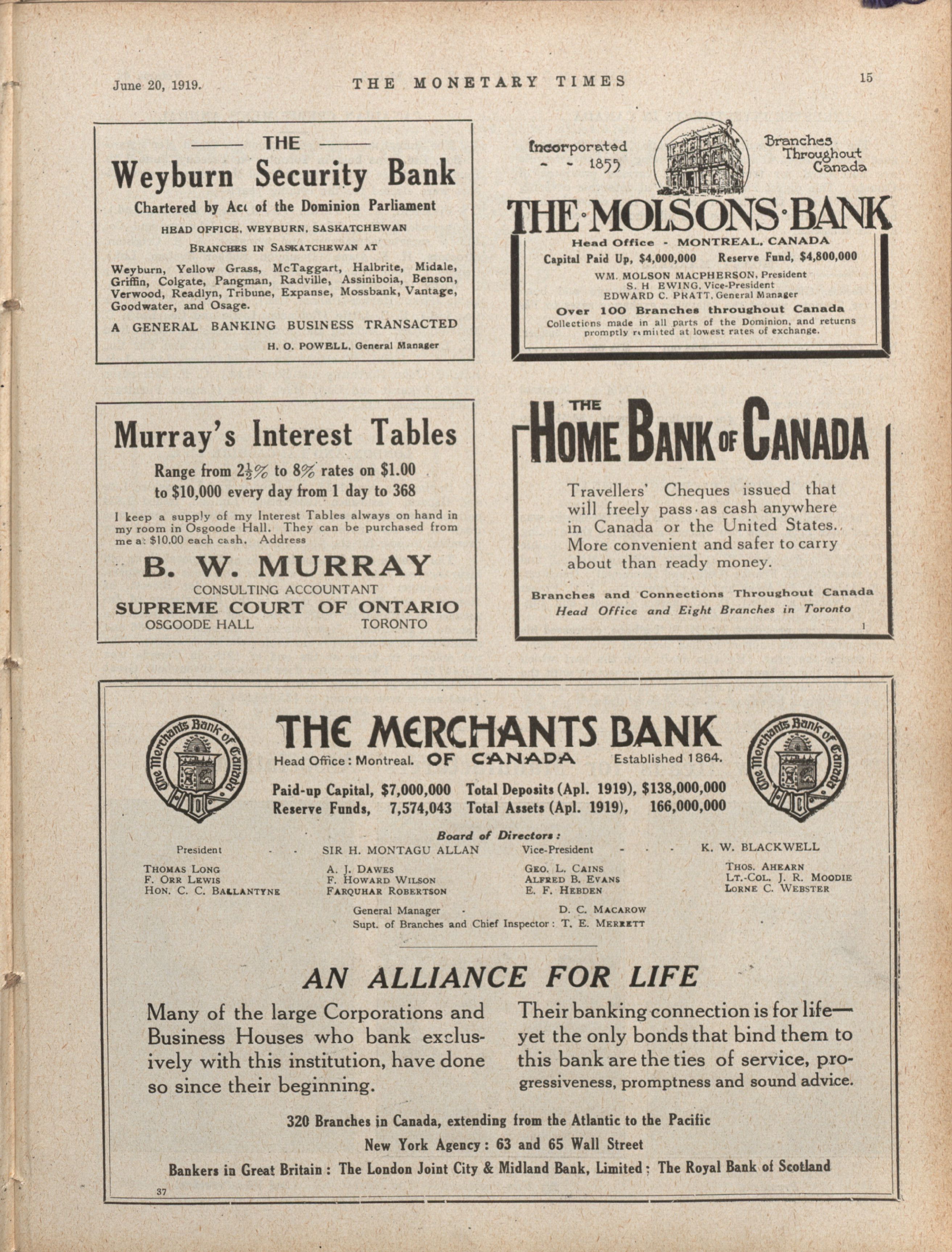 The Monetary Times, trade review and insurance chronicle. : Volume 62 No. 25 (June 20, 1919)