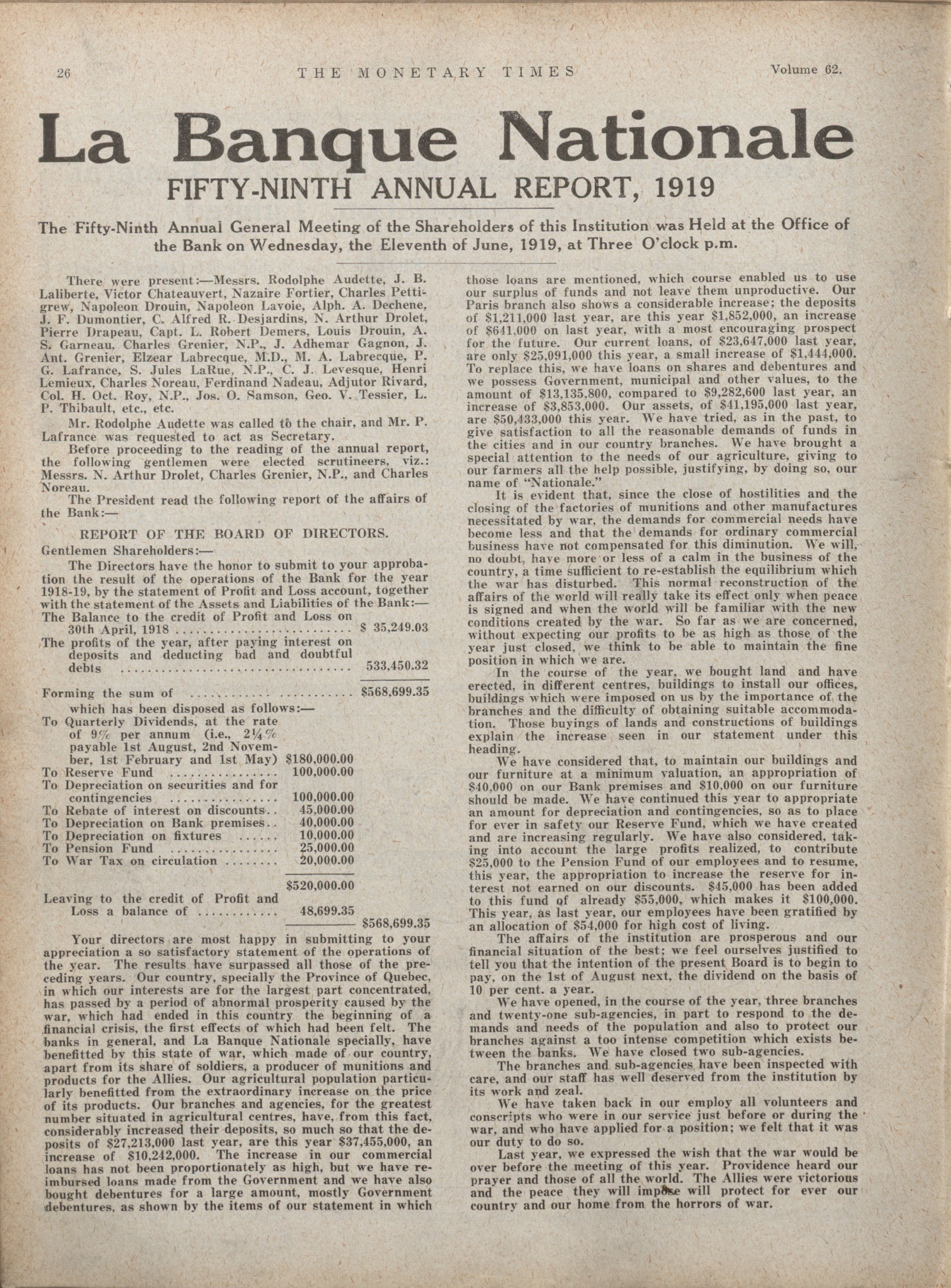 The Monetary Times, trade review and insurance chronicle. : Volume 62 No. 25 (June 20, 1919)