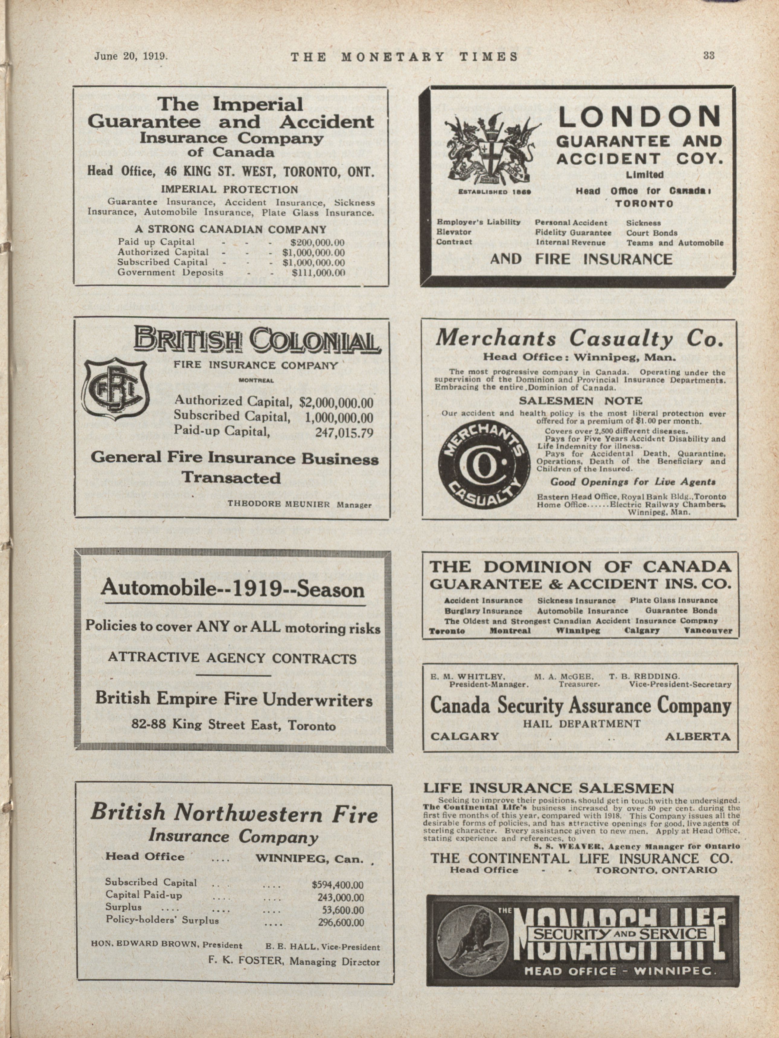 The Monetary Times, trade review and insurance chronicle. : Volume 62 No. 25 (June 20, 1919)