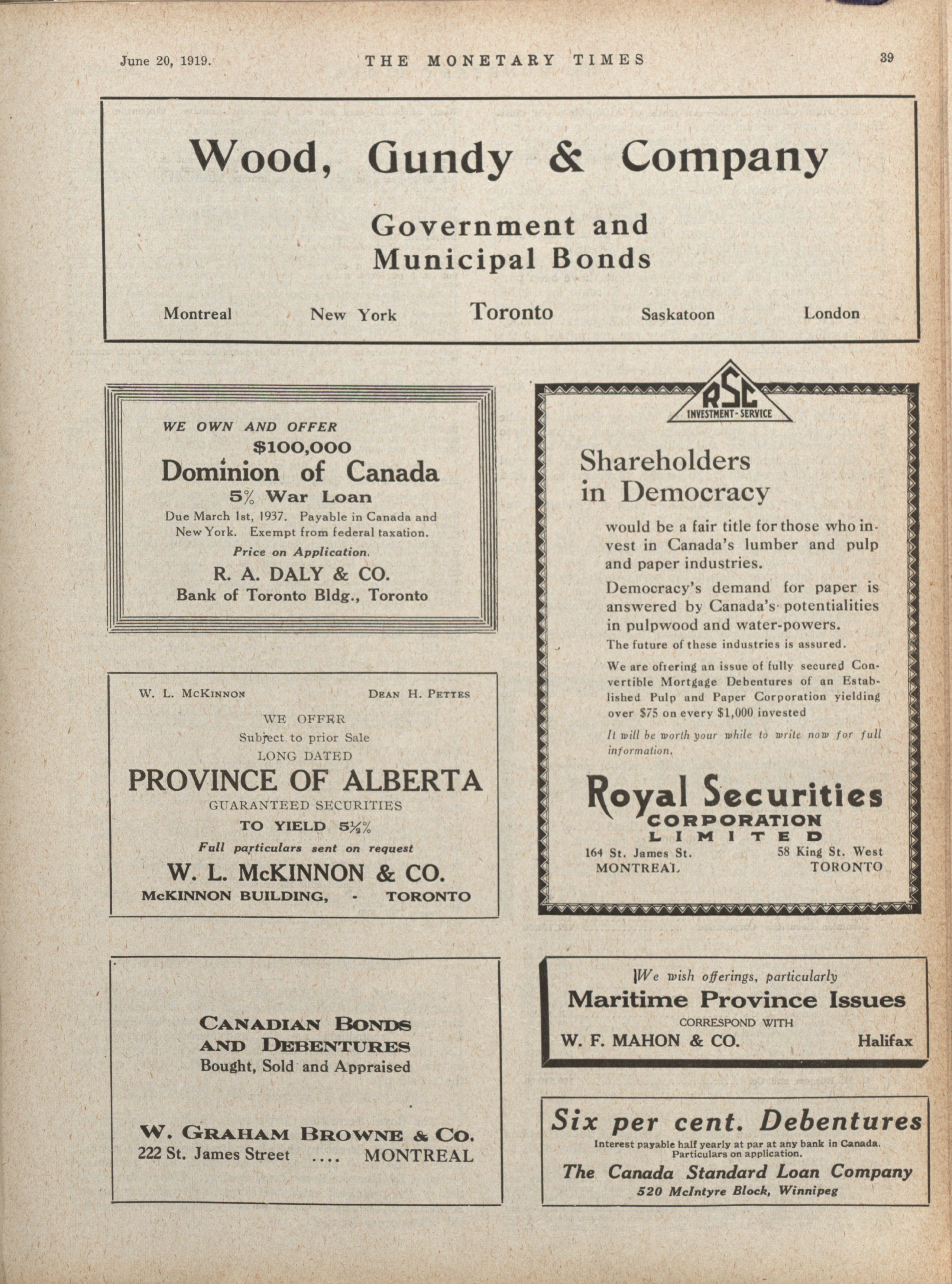 The Monetary Times, trade review and insurance chronicle. : Volume 62 No. 25 (June 20, 1919)