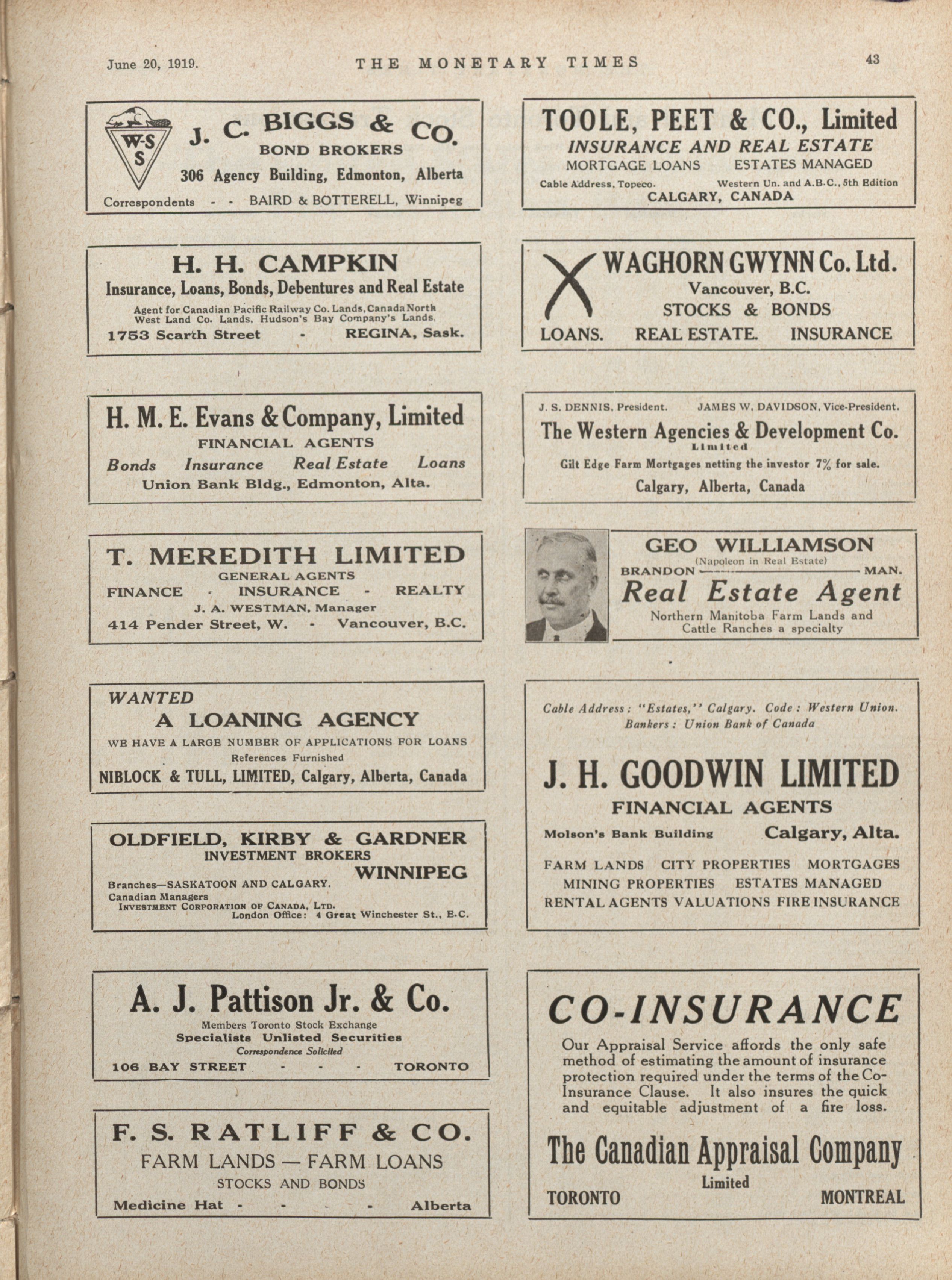 The monetary times, trade review and insurance chronicle : Volume 62 No. 25 (June 20, 1919)