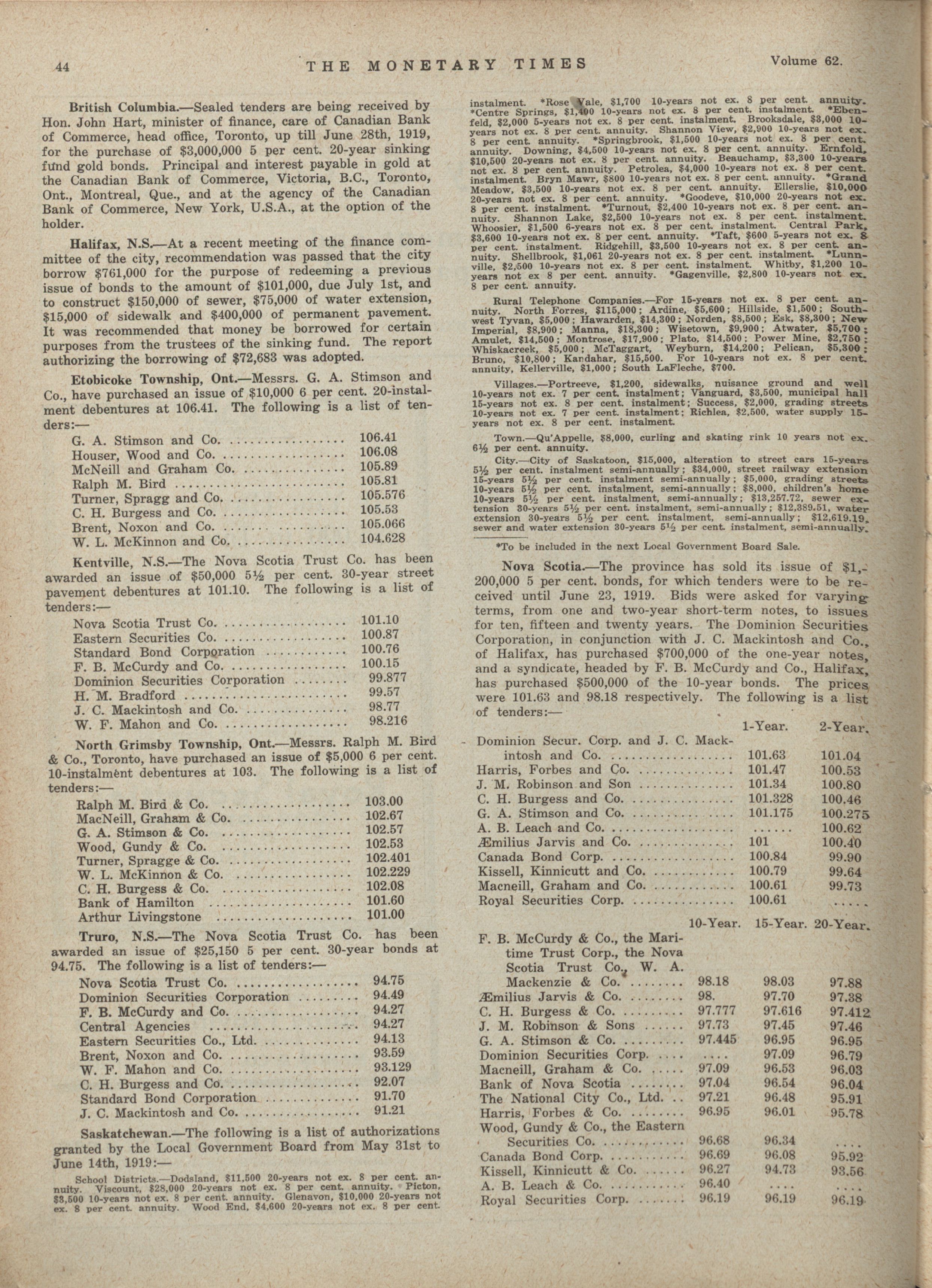 The monetary times, trade review and insurance chronicle : Volume 62 No. 26 (June 27, 1919)