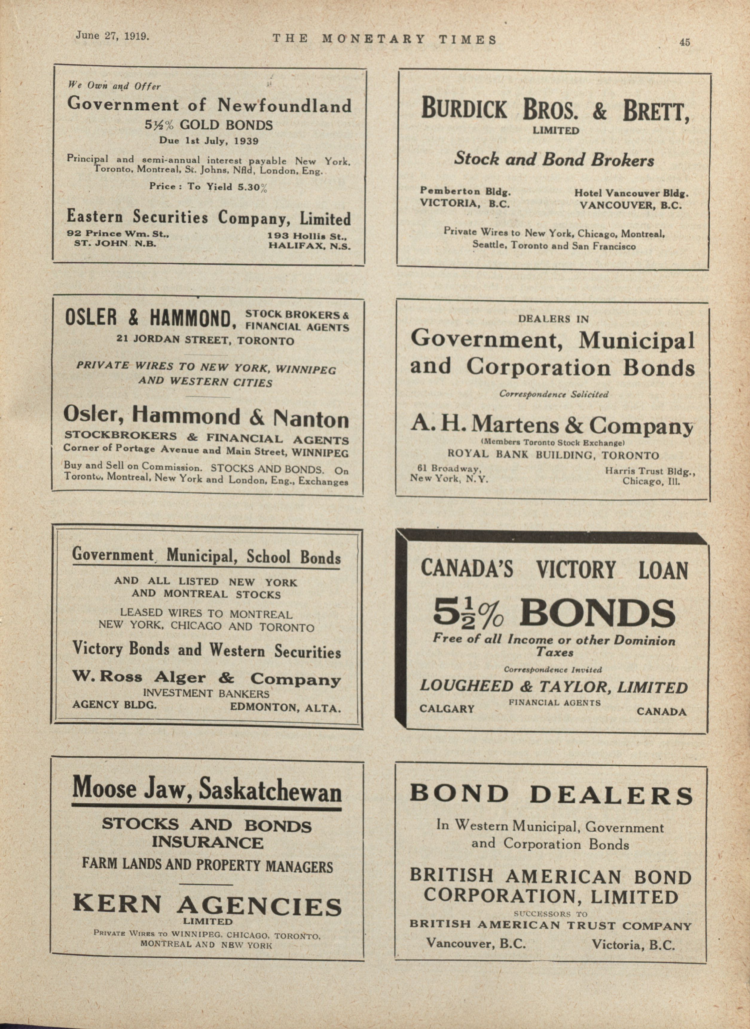 - The Monetary Times, trade review and insurance chronicle. : Volume 62 No. 26 (June 27, 1919)