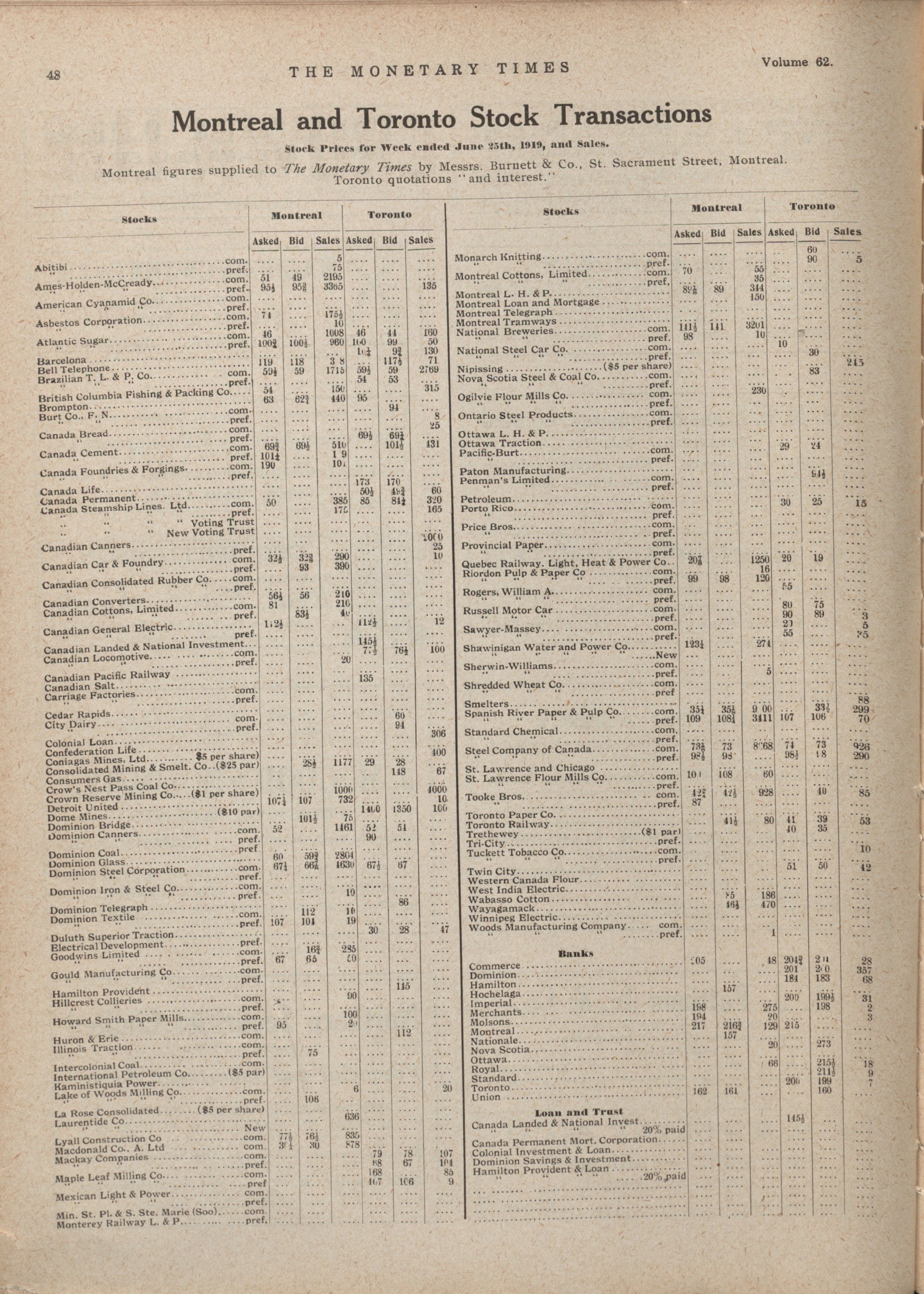 - The Monetary Times, trade review and insurance chronicle. : Volume 62 No. 26 (June 27, 1919)