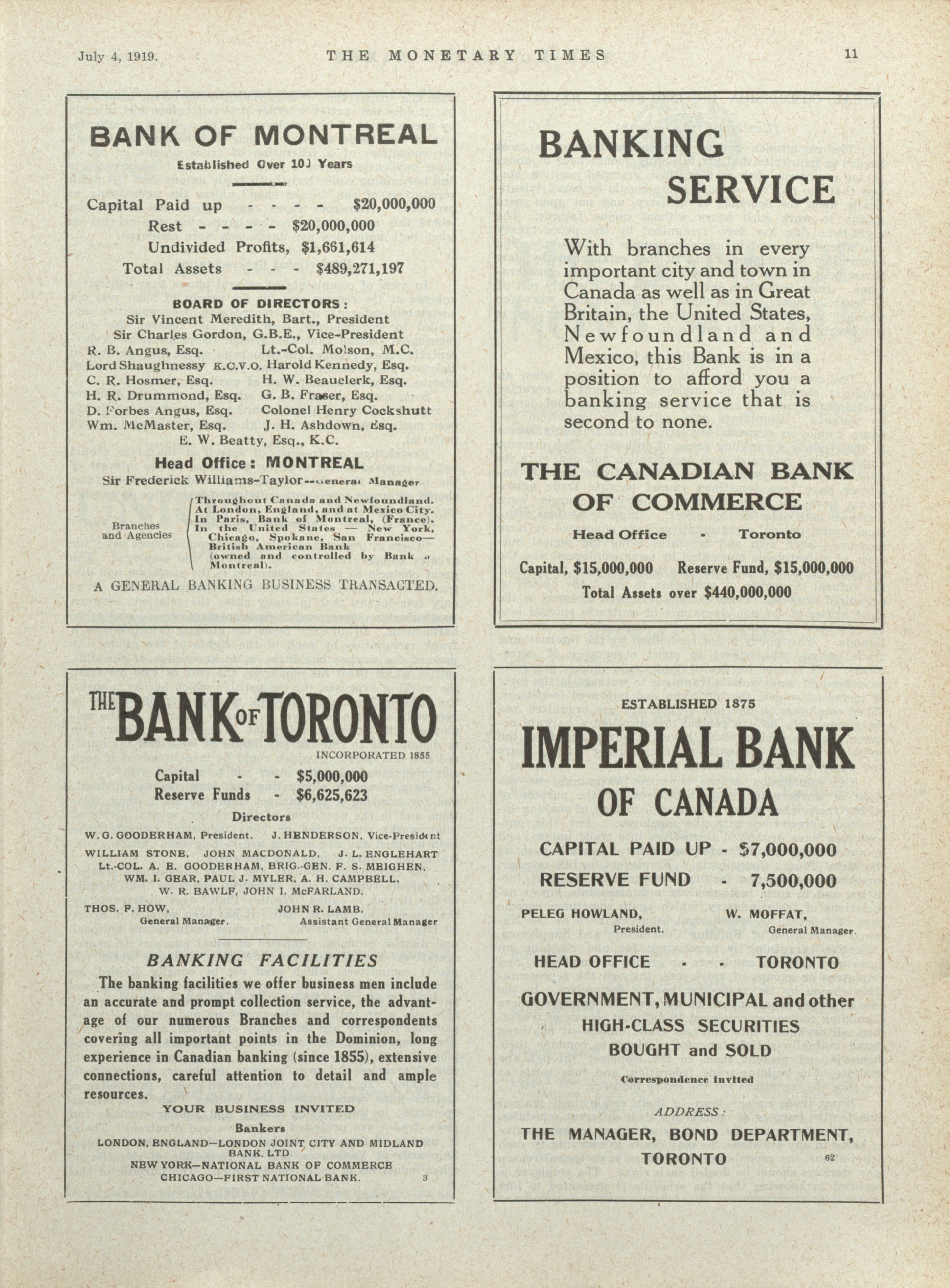 The Monetary Times, trade review and insurance chronicle. : Volume 63 No. 1 (July 4, 1919)