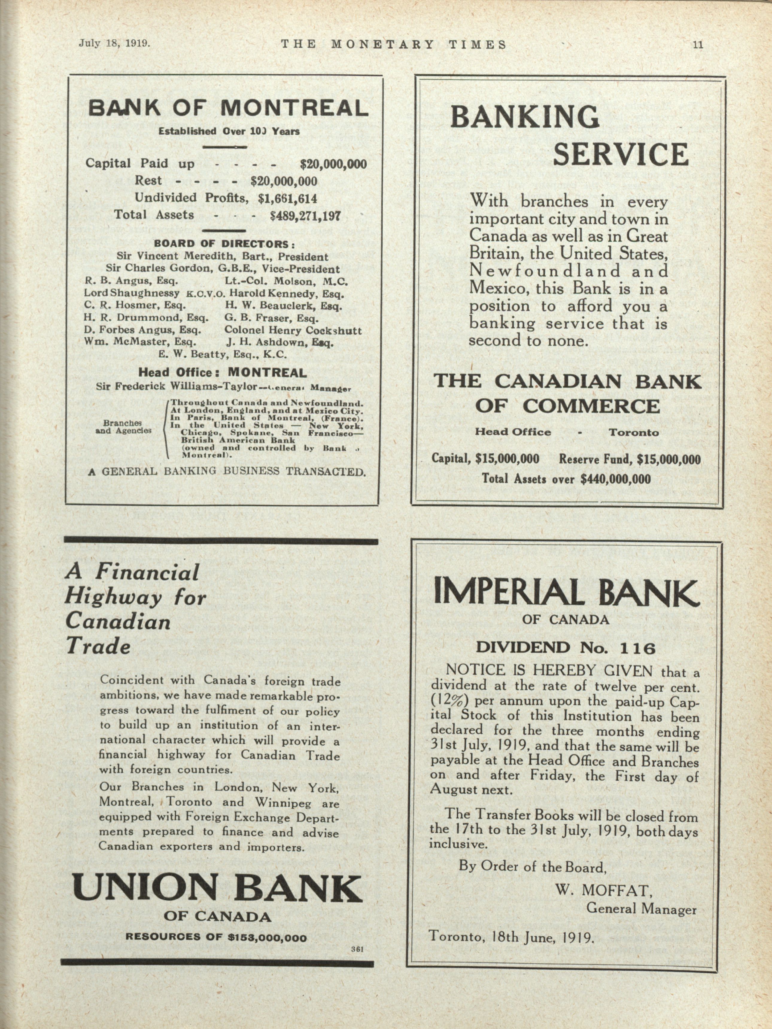 The Monetary Times, trade review and insurance chronicle. : Volume 63 No. 3 (July 18, 1919)