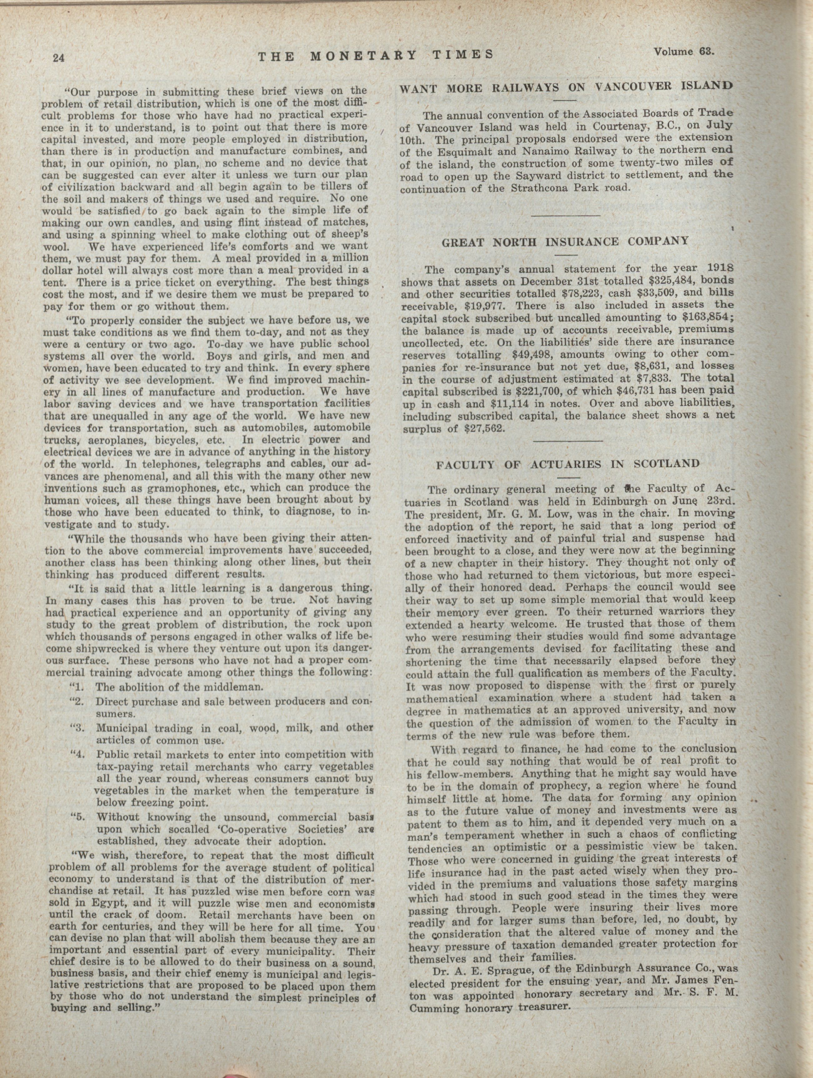 - The Monetary Times, trade review and insurance chronicle. : Volume 63 No. 4 (July 25, 1919)