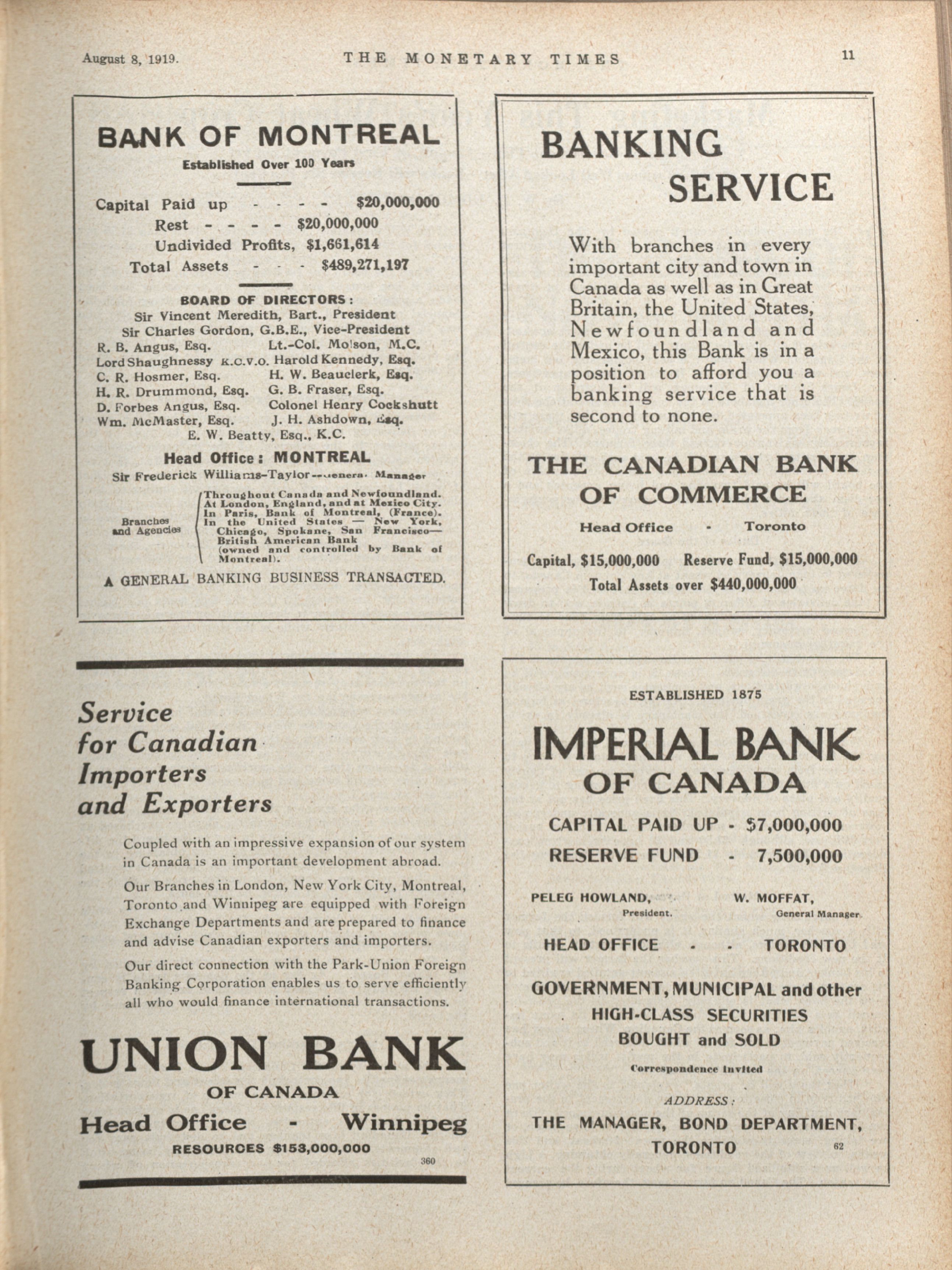 - The Monetary Times, trade review and insurance chronicle. : Volume 63 No. 6 (August 8, 1919)