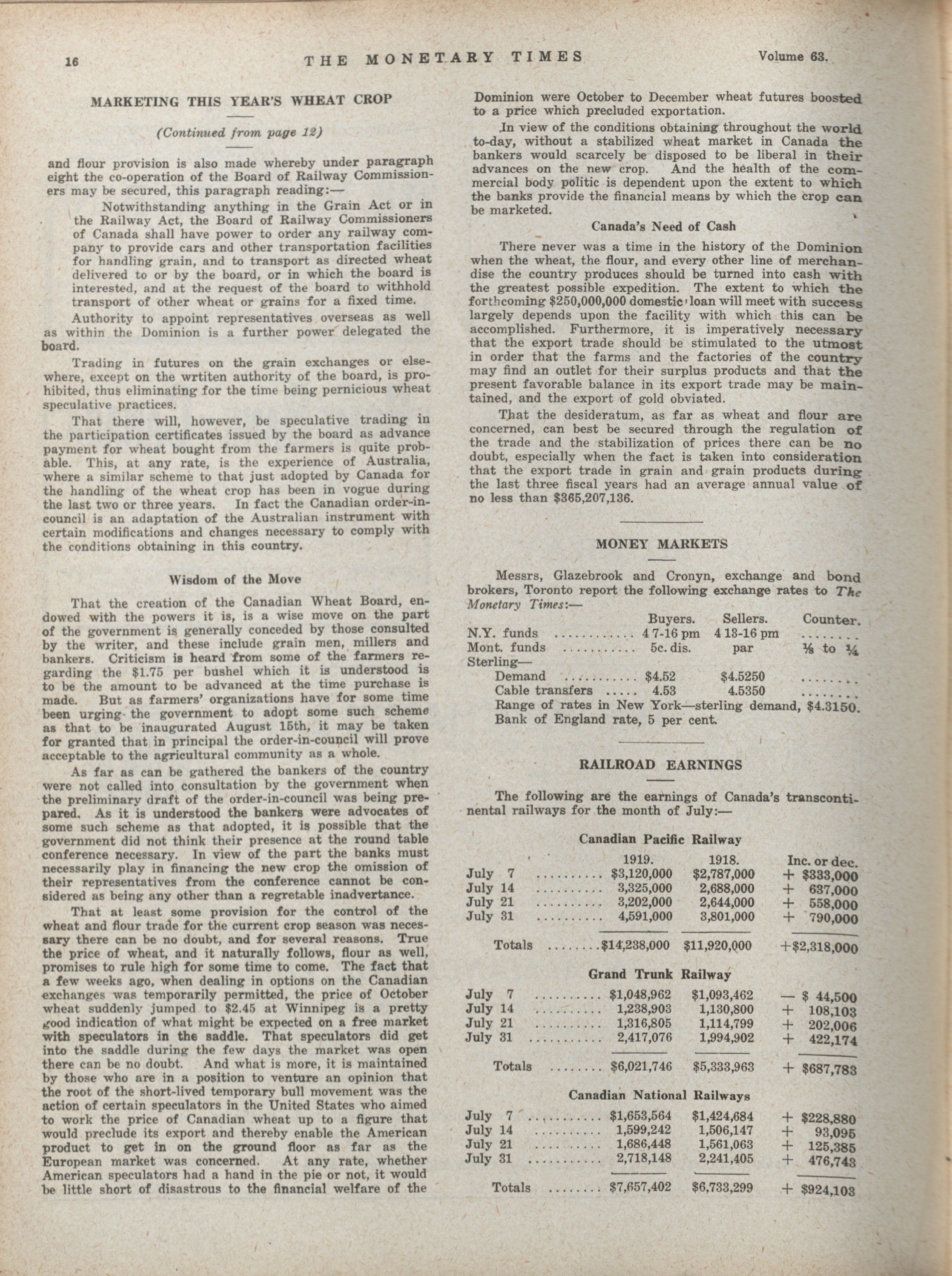 - The Monetary Times, trade review and insurance chronicle. : Volume 63 No. 6 (August 8, 1919)