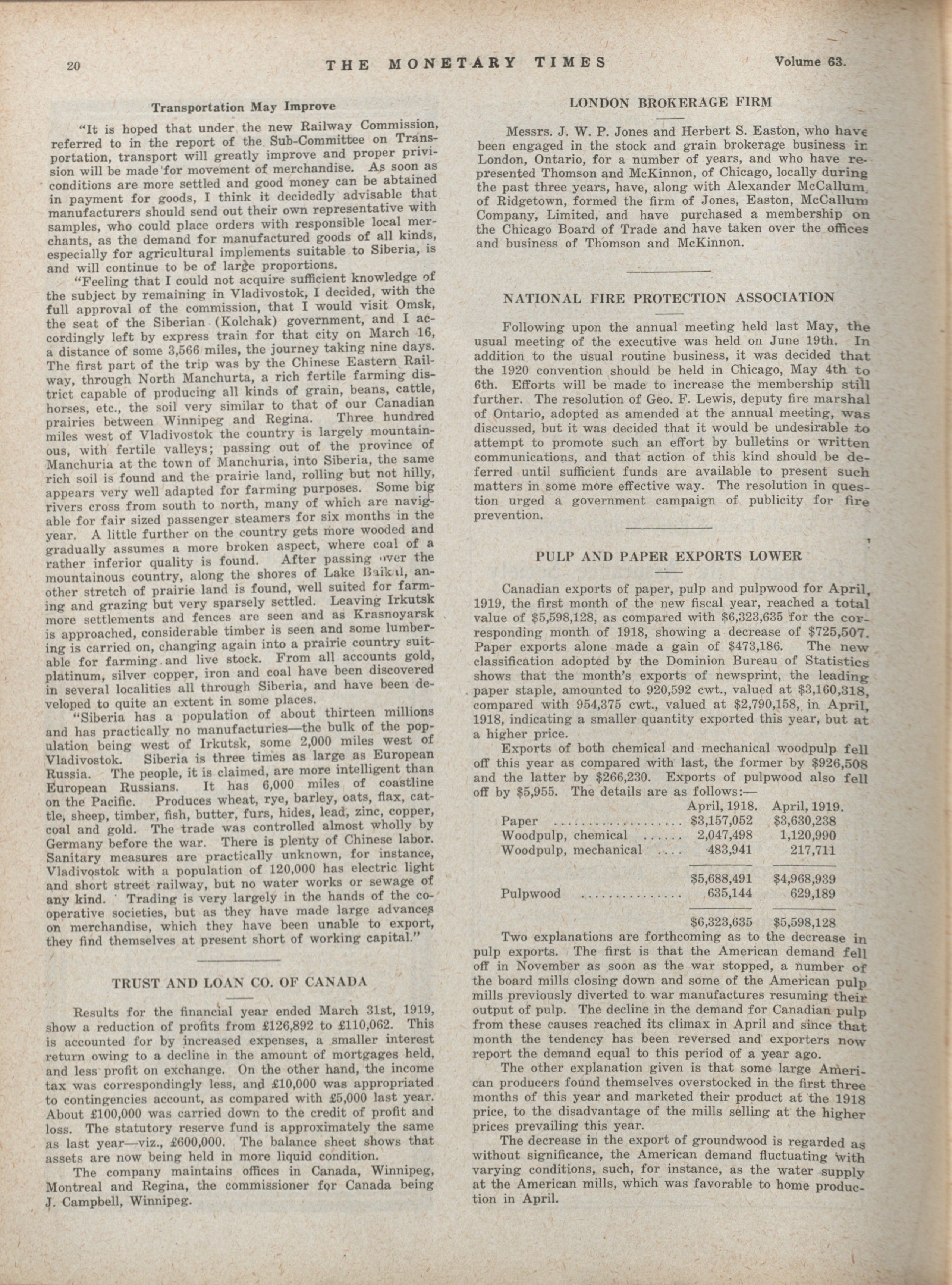 - The Monetary Times, trade review and insurance chronicle. : Volume 63 No. 6 (August 8, 1919)